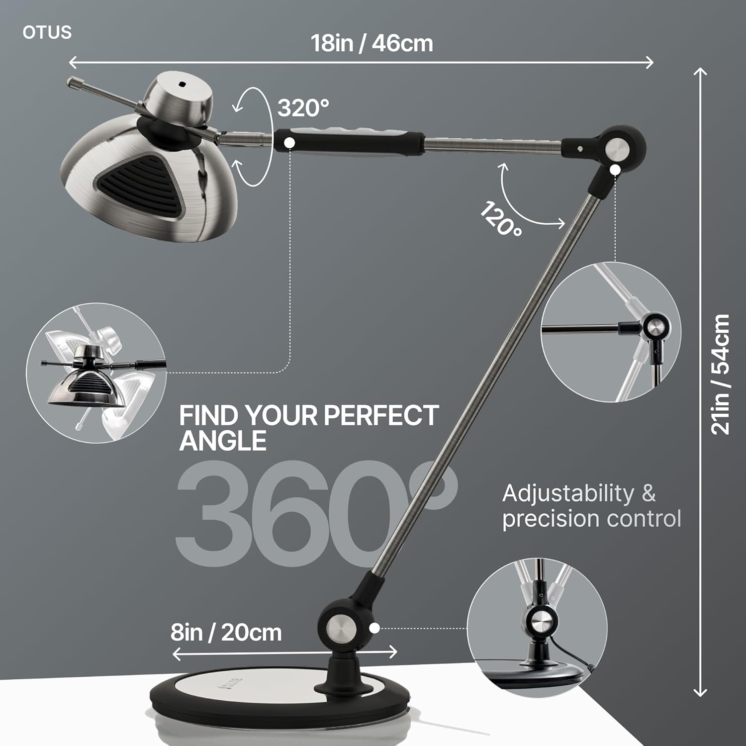 OTUS LED Desk Lamp for Home Office with Gesture Control | Eye-Caring Desk Light 1500 Lux, 12 Brightness & 3 Color | Architect Desk Lamp with Adjustable Swing Arm | Table Light for Work, Study, Reading
