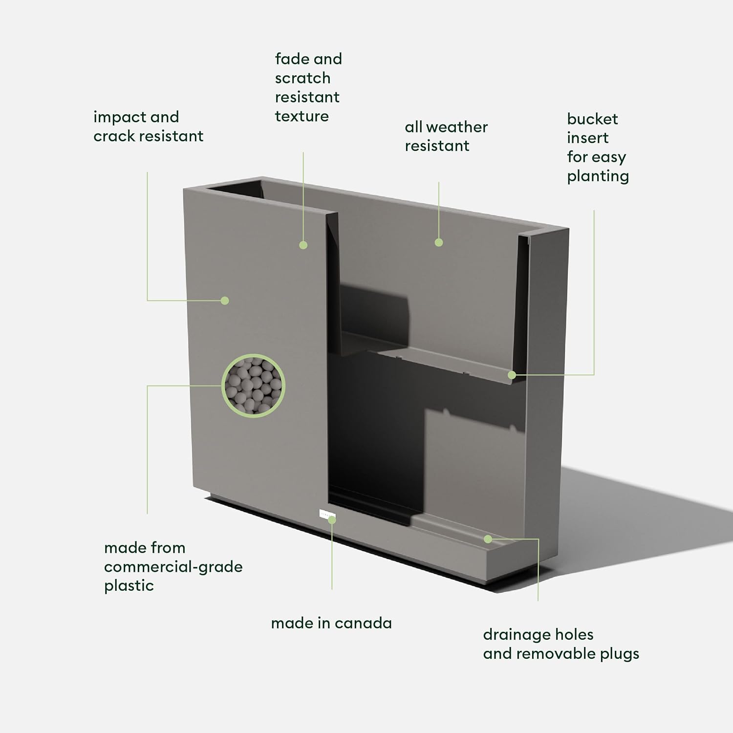 • Removable Insert Bucket: Includes a removable insert bucket for easy soil changes and versatile plant arrangements.