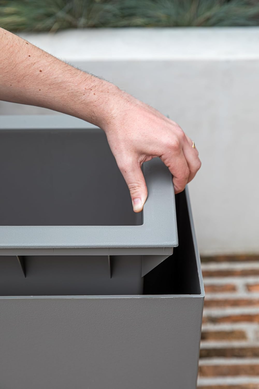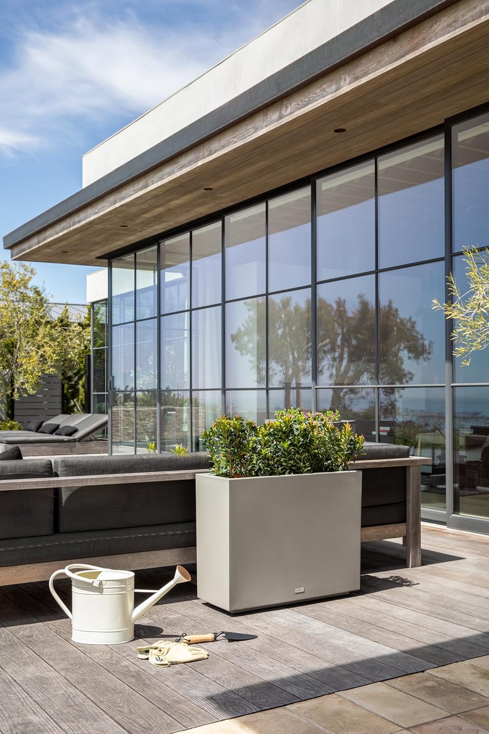 Veradek Block Series Span Plastic Planter - Tall Rectangular Planter for Indoor or Outdoor Patio/Porch, Gray, 24.25 in Height, 12 in Width, 30 in Length
