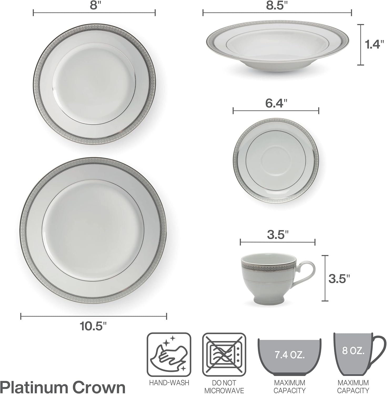 • BEAUTIFUL DETAILS AND DESIGN: This elegant white dinnerware pattern is trimmed with embossed platinum bands, perfect for formal occasions.