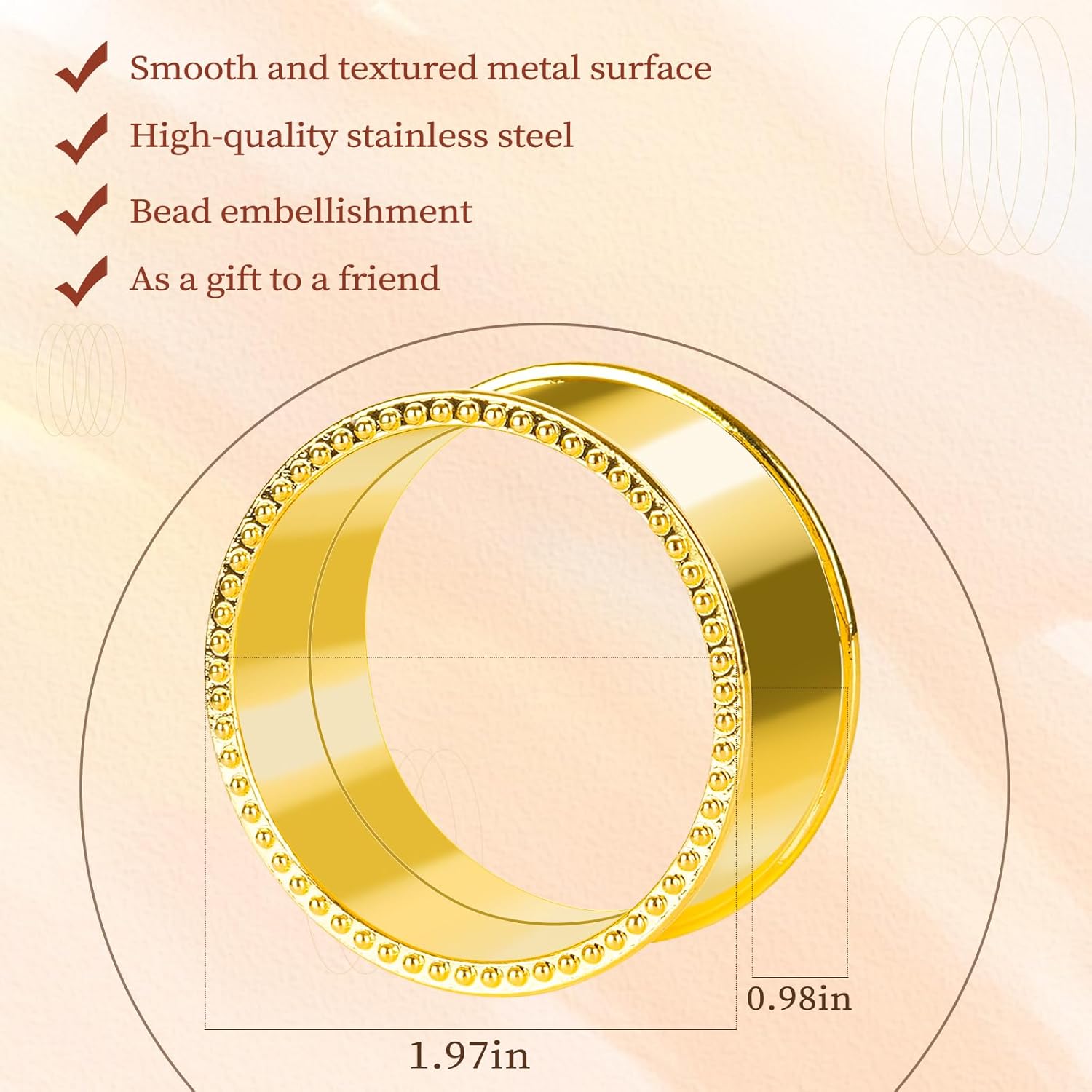 6 Pcs Stainless Steel Bead Side Napkin Rings Delicate Serviette Buckles (Gold)