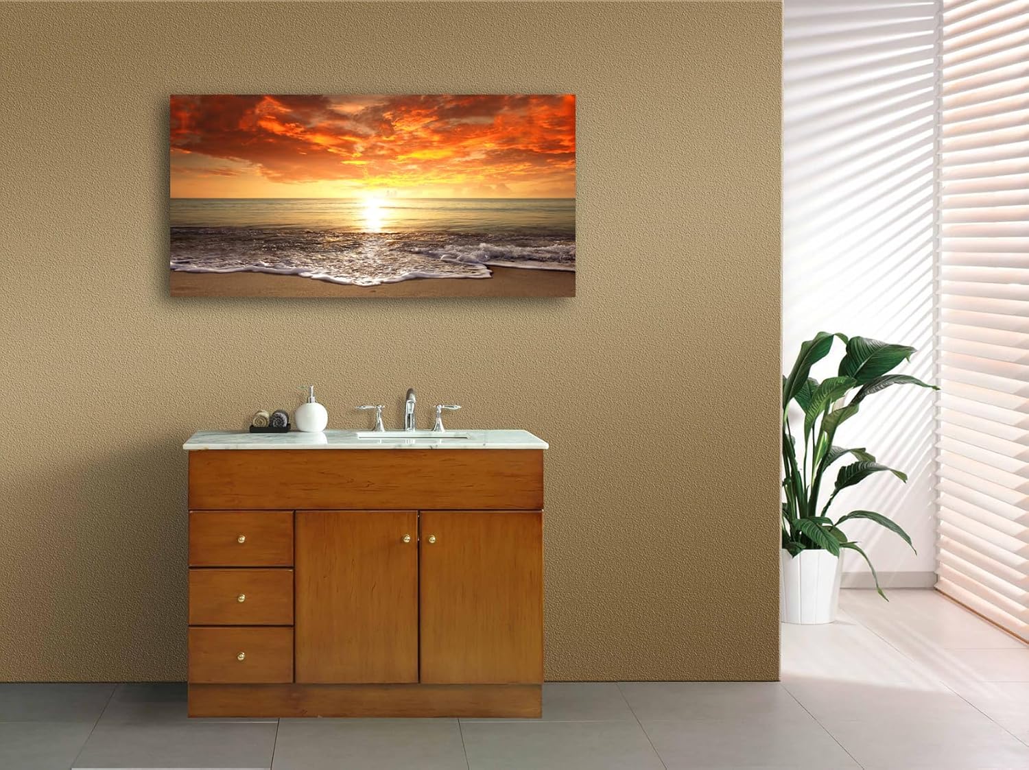 Baisuart-S0162 Canvas Prints Wall Art Sunset Ocean Beach Pictures Photo Paintings for Living Room Bedroom Home Decorations Modern Stretched and Framed Seascape Waves Landscape Giclee Artwork