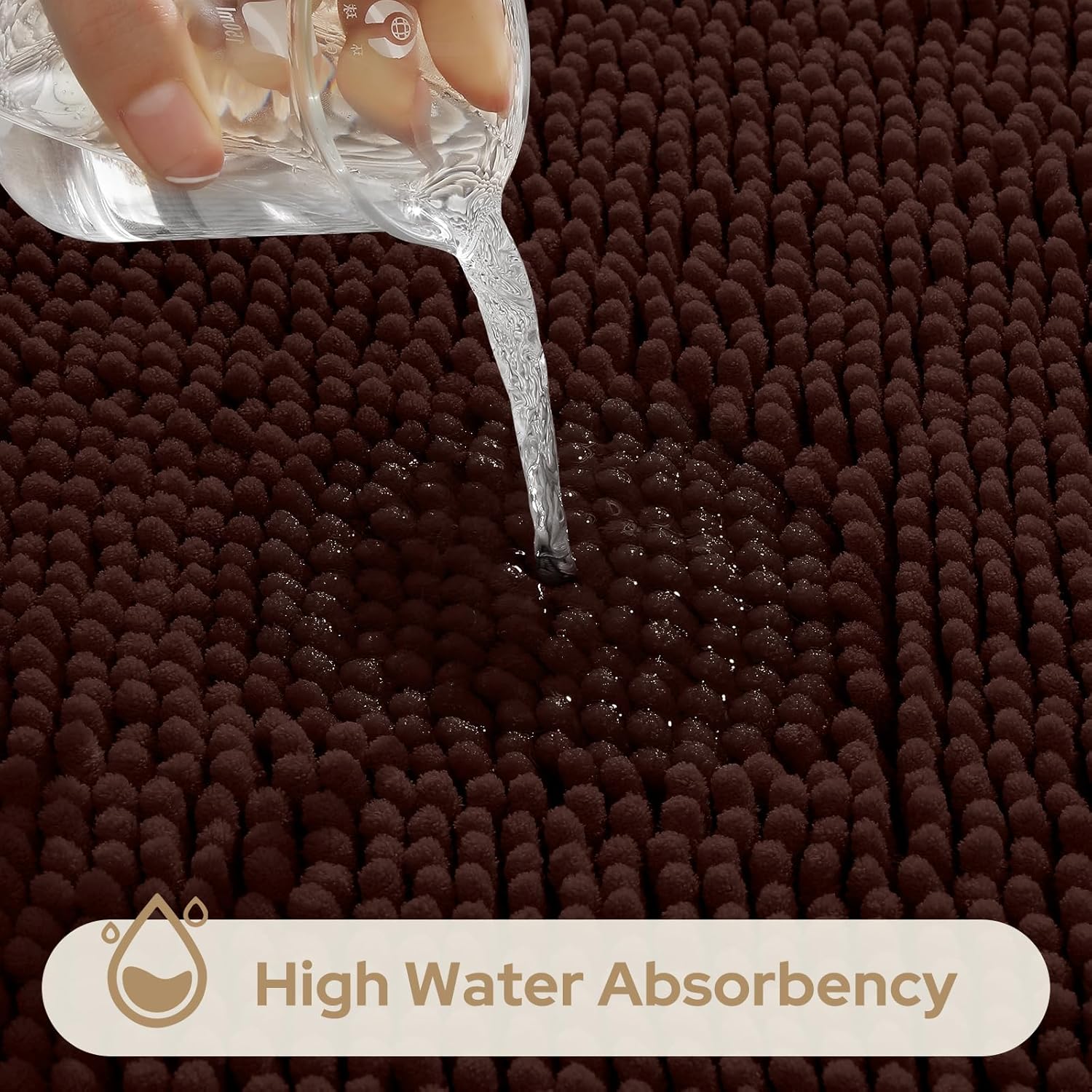 - HIGH WATER ABSORBENCY: High-pile, thick Chenille fabric helps save your floors from dripping water while you're stepping out of the bath, bathtub, shower, or getting ready by the sink. Moisture is trapped in the bathroom mat's deep pile, allowing the rug to dry quickly and cleanly. Place rug on CLEAN DRY SMOOTH FLOOR only. Water under the rug can cause it to slip. Keep bottom of rug dry.