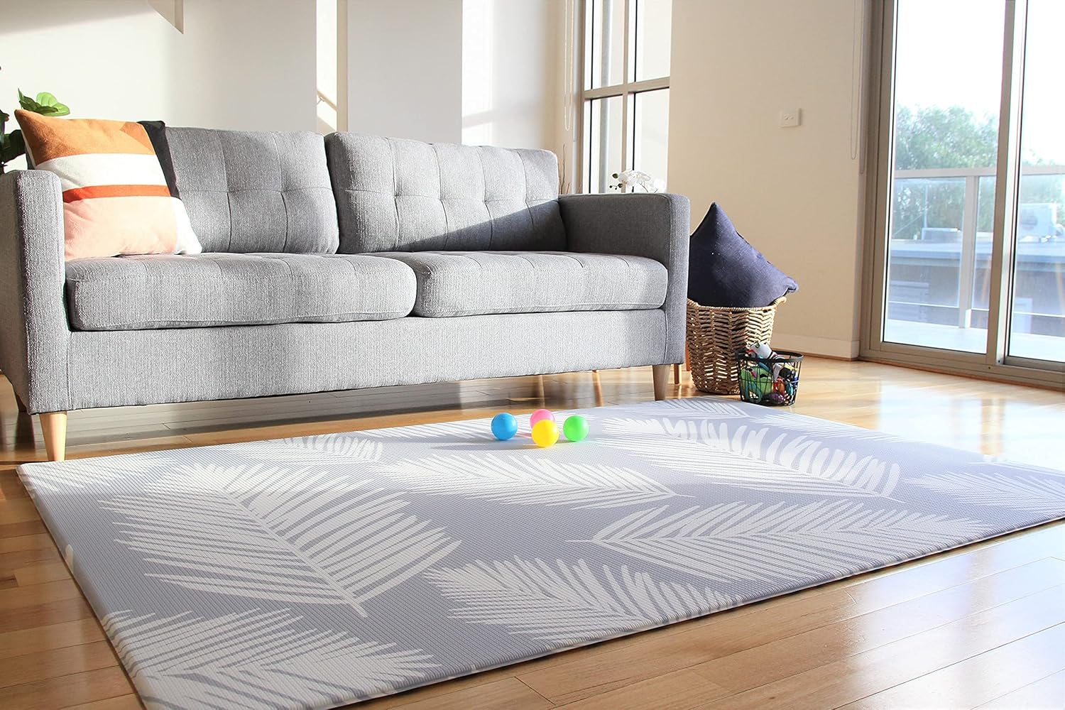 Cushmat Stylish Reversible Foam Play Mat (Large, Palm Gray - Blue Diamonds) - Soft, Waterproof, Durable Play mat for Infants, Babies, Toddler, Kids & Grownup - 6.5ft x 4.5ft