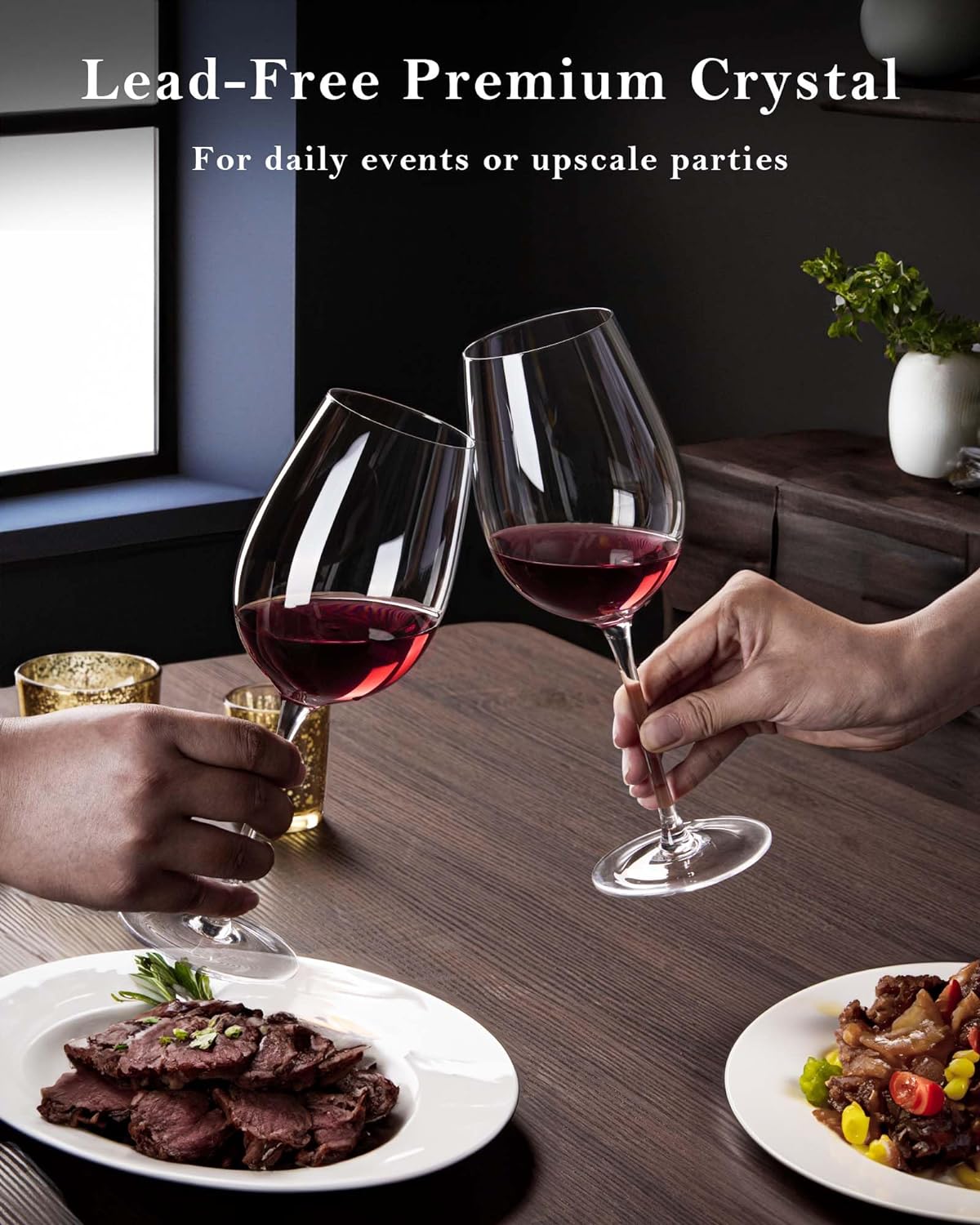 JBHO Crystal Wine Glasses - Hand Blown Red or White Wine Glasses -18 Ounce - Set of 2 - Lead-Free Premium Crystal - Long Stem Wine Glasses - Clear