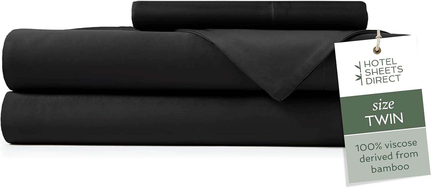 Hotel Sheets Direct 3 Piece Bed Sheet Set Twin Size, 100% Viscose Derived from Bamboo Sheets Set with 1 Pillowcase, Cooling & Breathable Luxury Bedding, Moisture-Wicking & Silky Soft Texture, Black