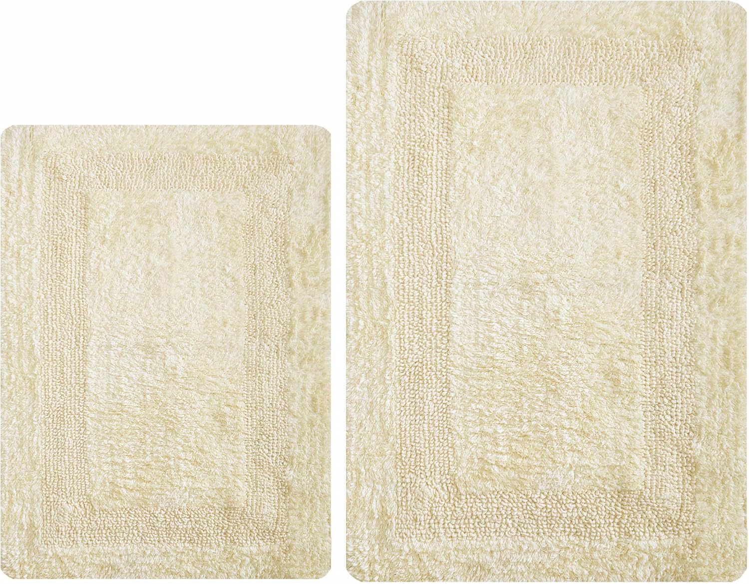 Bathroom Rugs Set 2 Piece Light Yellow Cotton Tufted Reversible Washable Bath Mats for Bathroom Floor| Quick Dry Bathroom Mat for Tub Spa Shower Toilet| Entry Way Door Mats|21x32 & 17x24 Inches