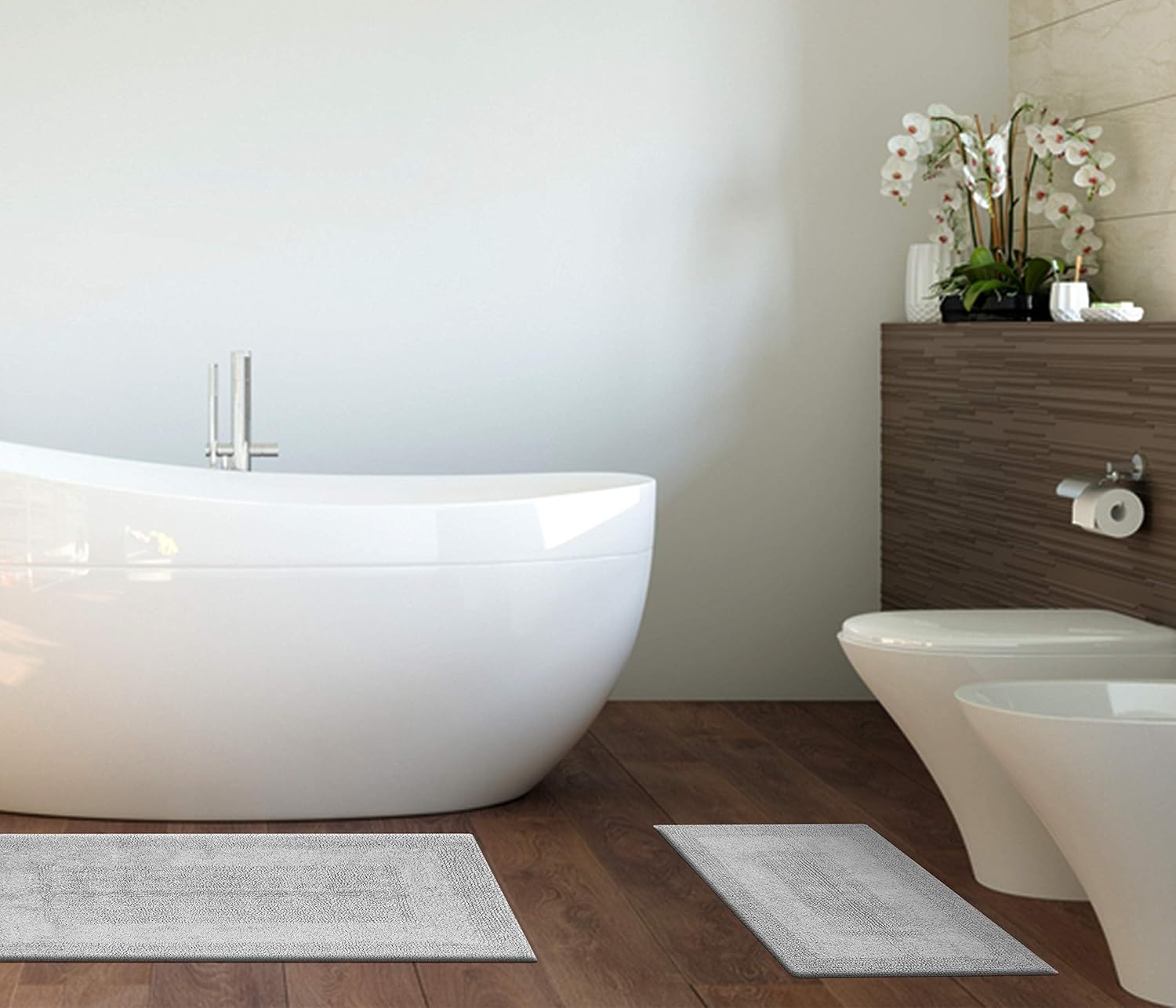 • DURABLE & LONG-LASTING:Designed for daily use, these rugs feature a high-quality weave that ensures strength and durability. The cotton fibers hold up well to repeated washing, maintaining their soft texture and absorbency over time. Whether placed in front of the shower, bathtub, or sink, these rugs are built to last while retaining their beauty.