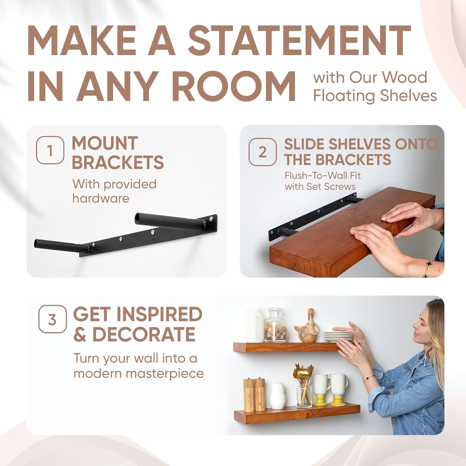 - NO HASSLE, ALL STYLE - Install our shelves in a snap with our easy-to-follow instructions. Spend less time setting up and more time admiring your fabulous new decor.