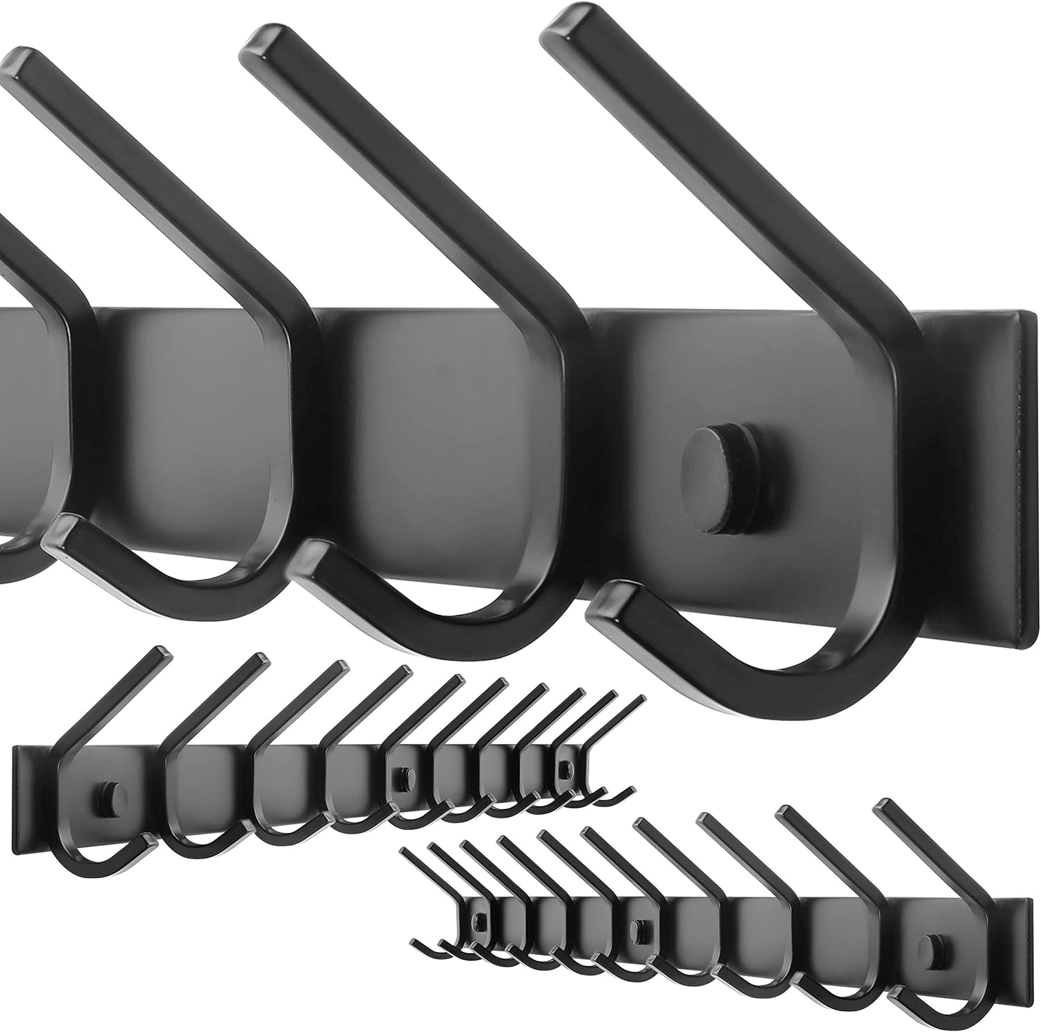 • The black wall coat rack with 10 hooks for hanging coats, clothes, hat, towels, jacket, backpack, robe, entryway, bathrooms, mudroom, etc.