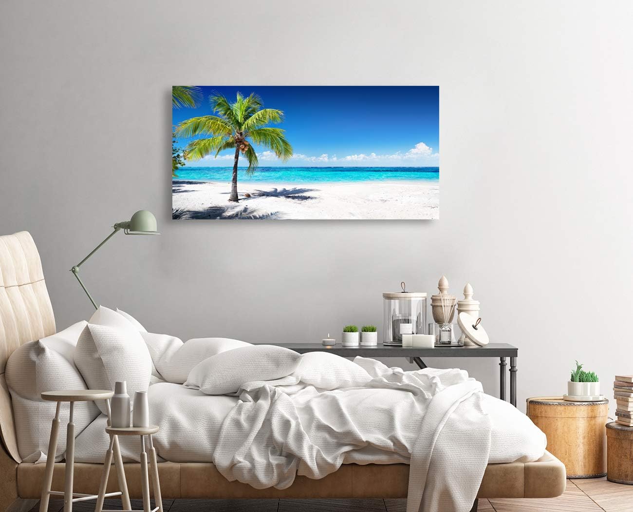 Baisuart-Large Canvas Wall Art Summer Ocean Waves Coconut Trees on Sands Beach Seascape Painting Sea Nature Pictures for Living Room Home Office Wall Decor Artwork