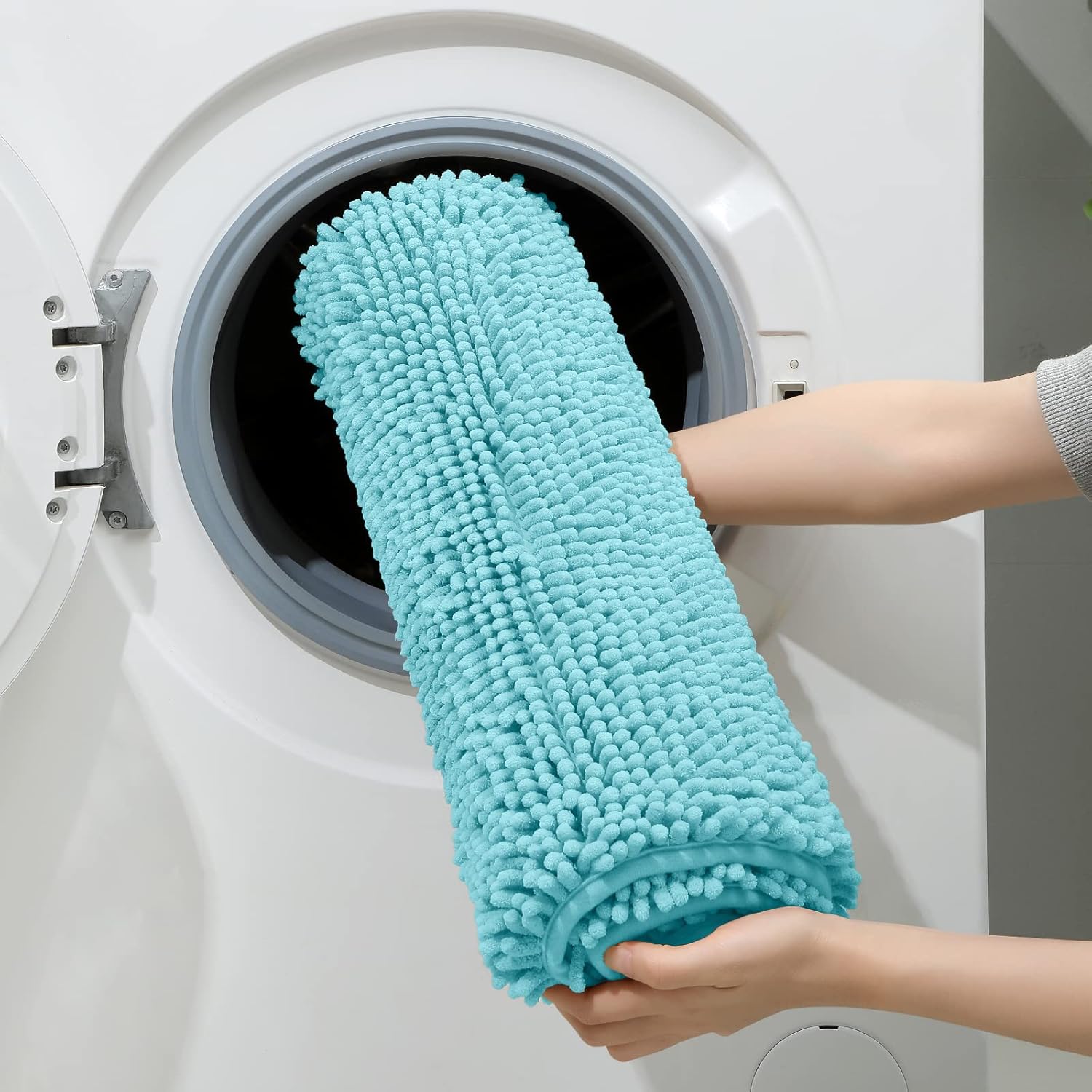 - HIGH WATER ABSORBENCY: High-pile, thick Chenille fabric helps save your floors from dripping water while you're stepping out of the bath, bathtub, shower, or getting ready by the sink. Moisture is trapped in the bathroom mat's deep pile, allowing the rug to dry quickly and cleanly. Place rug on CLEAN DRY SMOOTH FLOOR only. Water under the rug can cause it to slip. Keep bottom of rug dry.