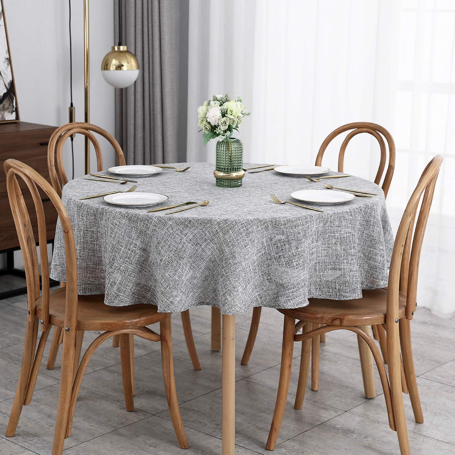 maxmill Flaxy Faux Linen Tablecloth with 2-Tone Slubby Texture Wrinkle Resistant Anti-Shrink Soft Table Cloth for Kitchen Dining Restaurant Tabletop for Event Dinner Round 70 Inch Light Gray