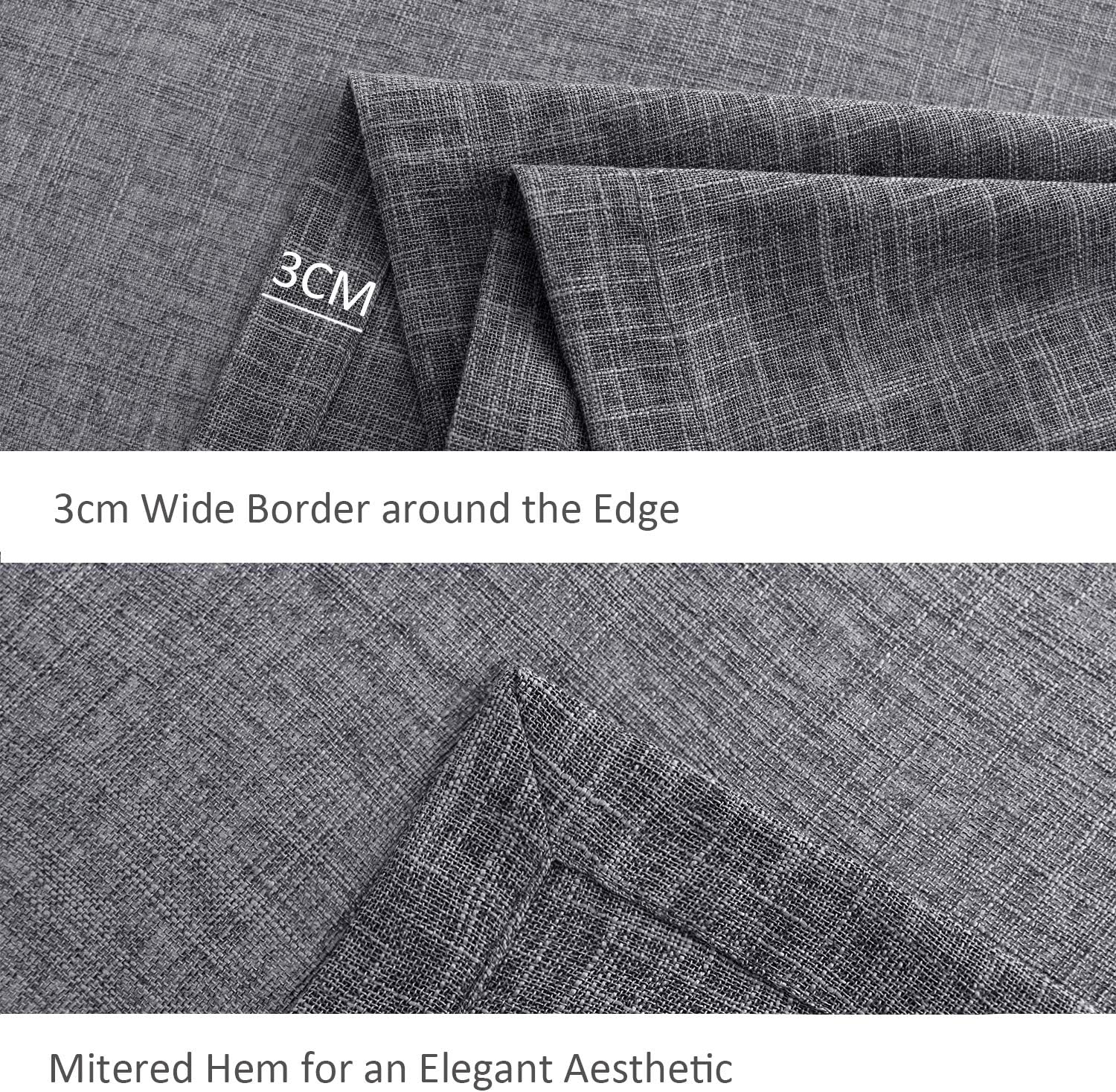 • Our table cloths are made of high-quality polyester faux linen yarn, with 2-tone slubby texture. It is more durable than real linen yet soft and supple; while protecting table surface, our tablecloth also adds a sense of understated luxury to your dining scene.