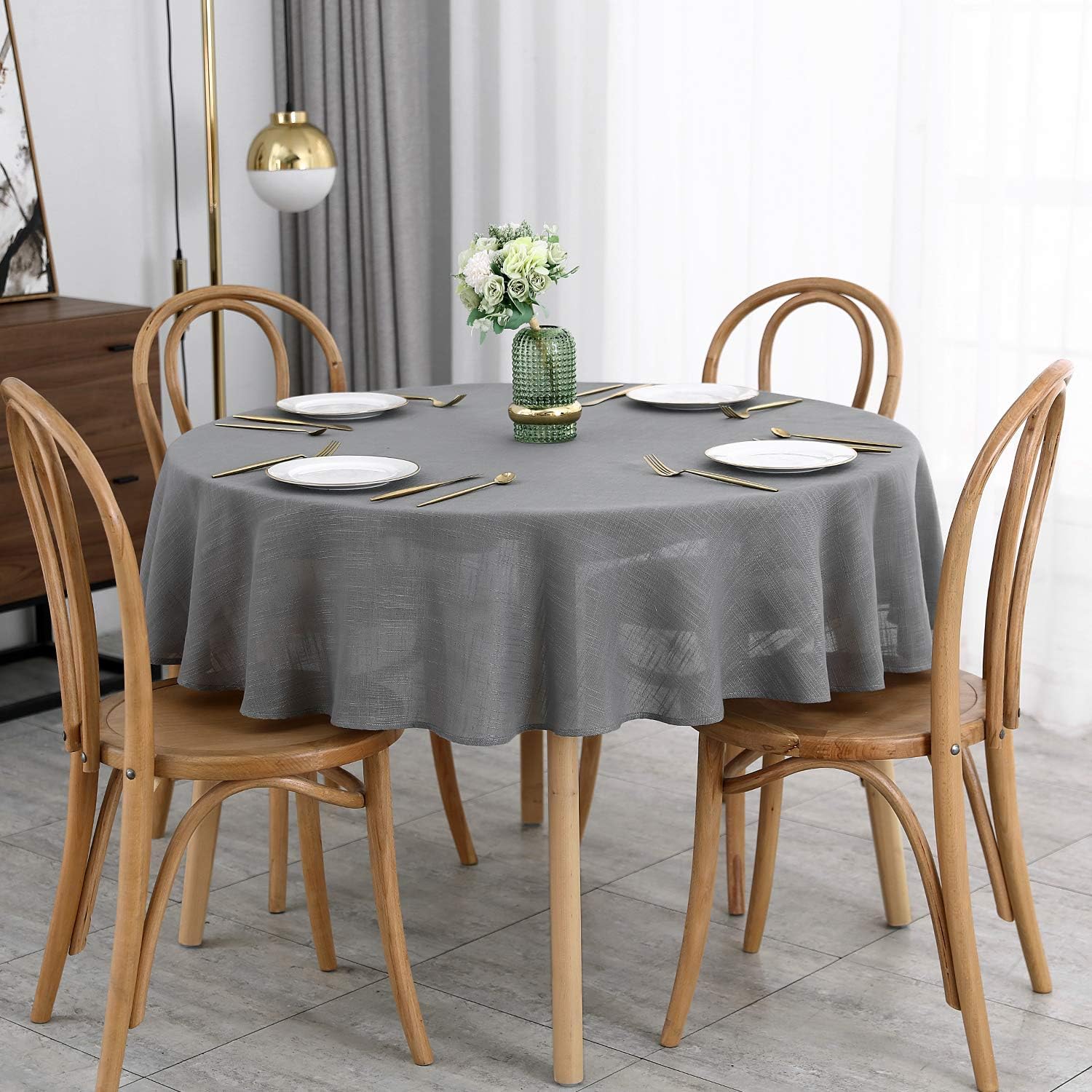 maxmill Lux Faux Linen Tablecloth with Slubby Texture Wrinkle Resistant Anti-Shrink Soft Table Cloth for Kitchen Dining Restaurant Tabletop for Event Holiday Dinner Round 70 Inch Neutral Gray