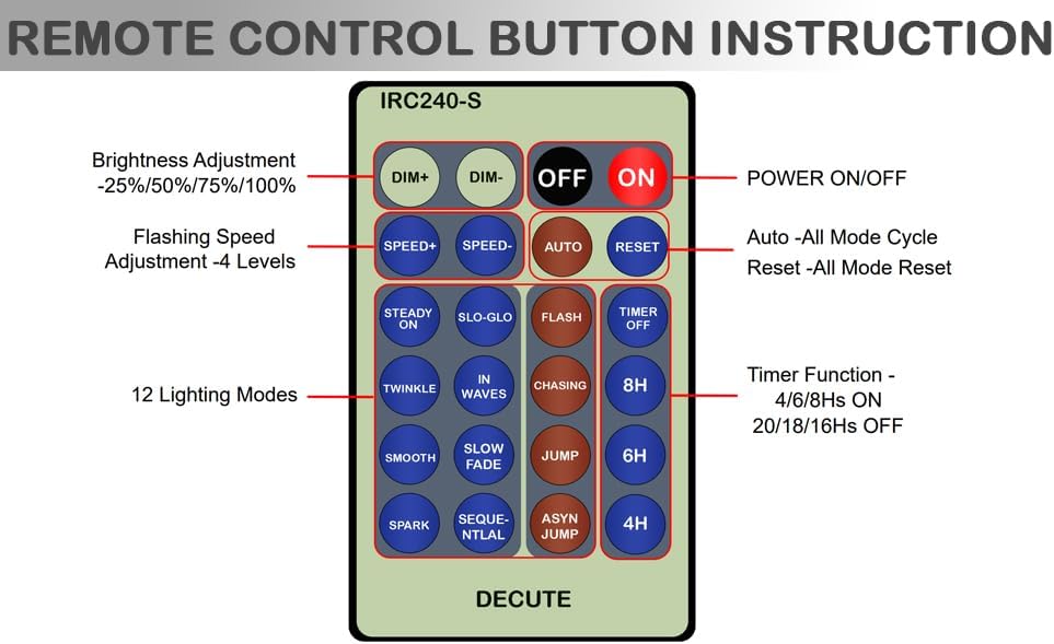 - Smart Remote Contorl with Memory Function: Handy smart remote make it easy to control. With 4 levels brightness dimmable, Timer function and 13 modes changable. You can adjust the brightness from 100%, 75%, 50%, 25%. The timer function has two settings: - The plug controller default setting is 6 hours ON and 18 hours OFF. - The remote control allows settings of 4/6/8 hours ON and 20/18/16 hours OFF.Or choose the modes you like. All the settings will be remember and you have no need to reset again next time.