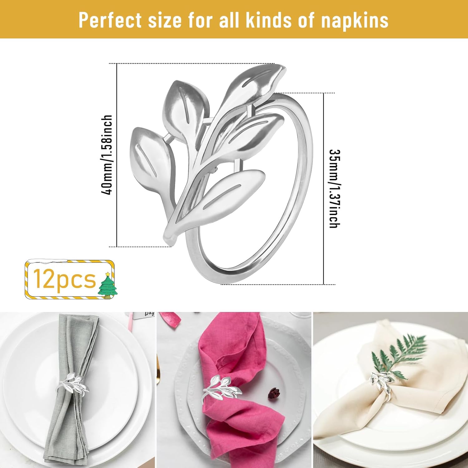 • Sliver Leaf Napkin Rings: You will receive 12 pcs refined sliver leaf napkin rings are made of alloy to match the dinner table, simple and sparkling for holidays dinner table settings; Cute, stylish and sturdy, add a touch of glamour and sparkle to the table setting