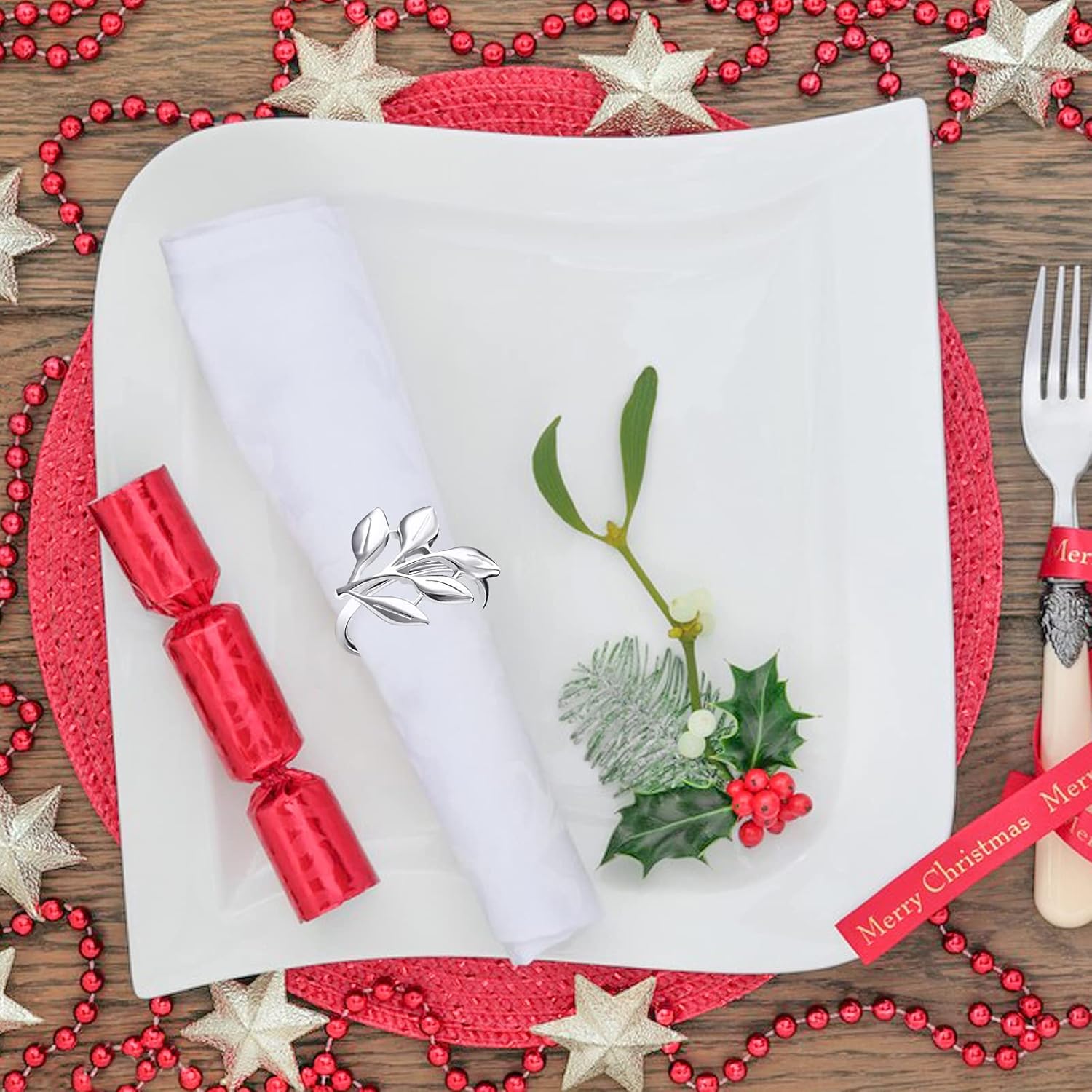 • Fit for Kinds of Napkins: Each napkin ring has a diameter of 1.58 inch, large enough for all cloth napkins; These beautiful napkin racks will add elegance to your table setting; Sparkling under the light, these bright and cheery Christmas napkin rings will go perfectly with your sparkling wine glasses
