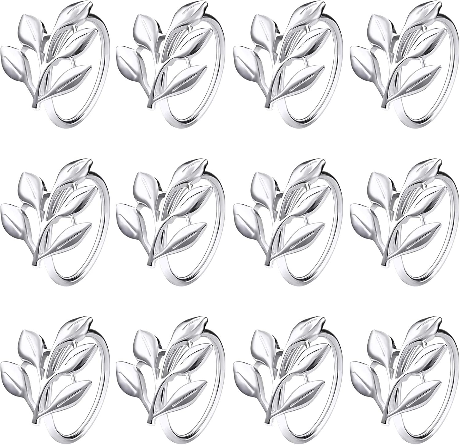 Legigo Sliver Napkin Rings Set of 12, Metal Leaf Napkin Ring Holders for Cloth Napkins, Fall Napkin Ring Buckles Bulk for Wedding Receptions, Christmas Thanksgiving Holiday Party Dinner Table Settings