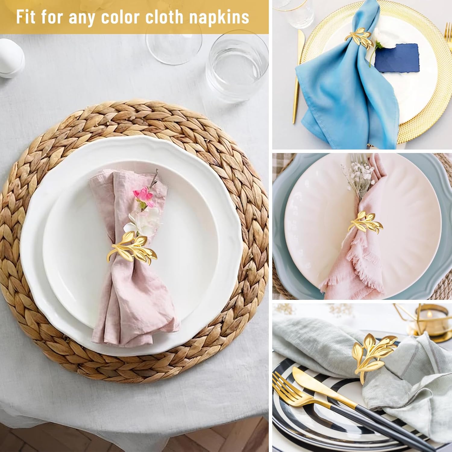 Gold Napkin Rings Set of 12, Metal Leaf Napkin Ring Holders for Cloth Napkins, Fall Napkin Ring Buckles Bulk for Wedding Receptions, Christmas Thanksgiving Holiday Party Dinner Table Settings