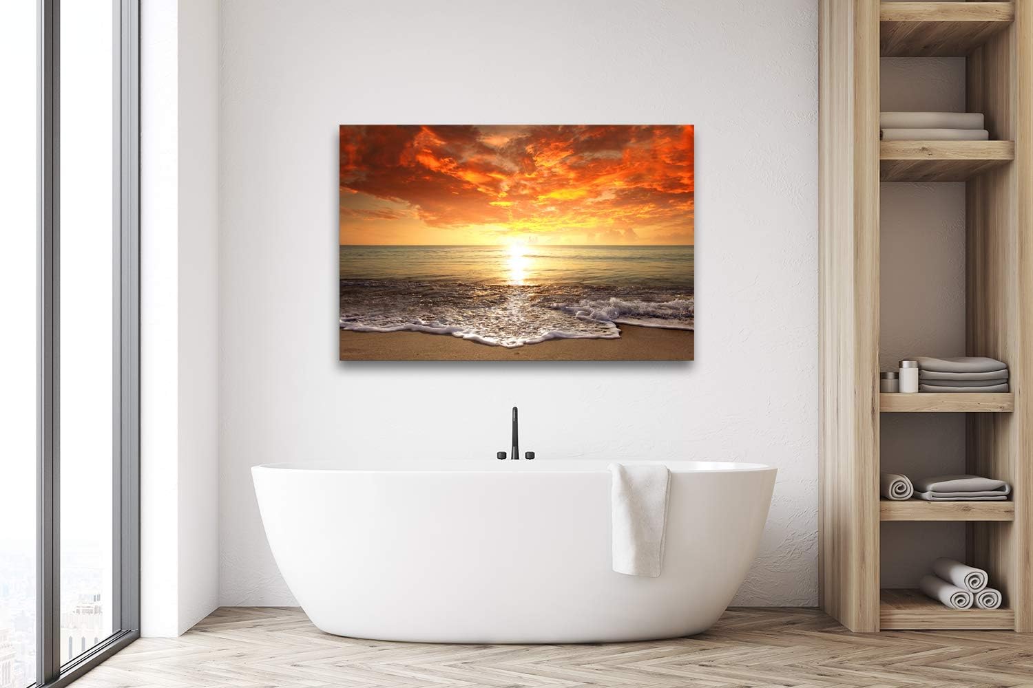 Baisuart-S0169 Canvas Prints Wall Art Sunset Ocean Beach Pictures Photo Paintings for Living Room Bedroom Home Decorations Modern Stretched and Framed Seascape Waves Landscape Giclee Artwork