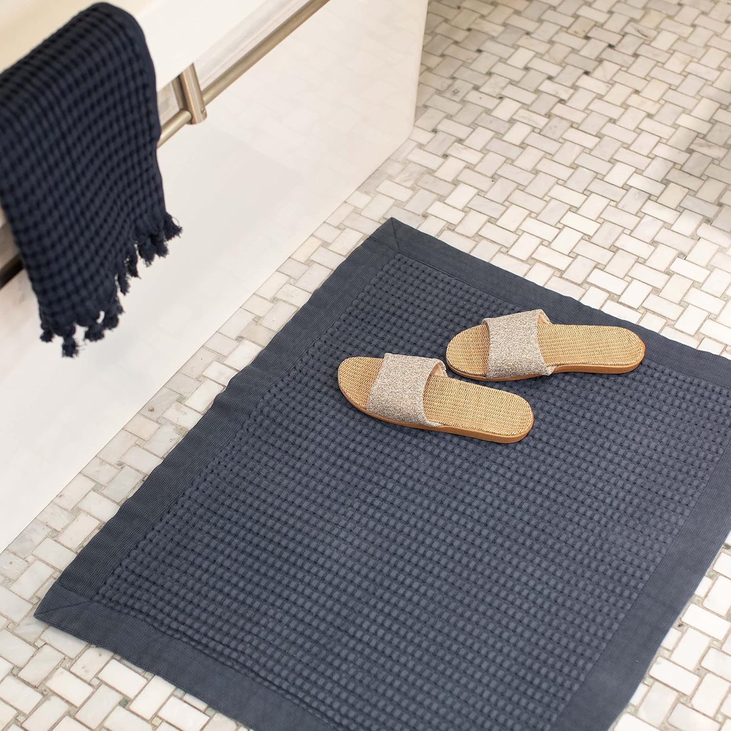GILDEN TREE Bathroom Mat Absorbent Cotton Quick Dry for Shower, Bath & Bathtub Washable Thin, Modern Style (Midnight Blue)
