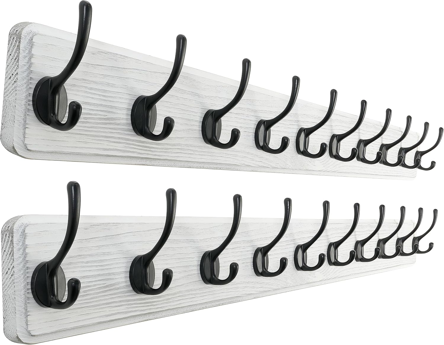 SKOLOO Rustic Wall Mounted Coat Rack, Case of 2, Pine Solid Wood Coat Hook Hanger - 10 Hooks for Hanging Clothes Robes Towels Coats