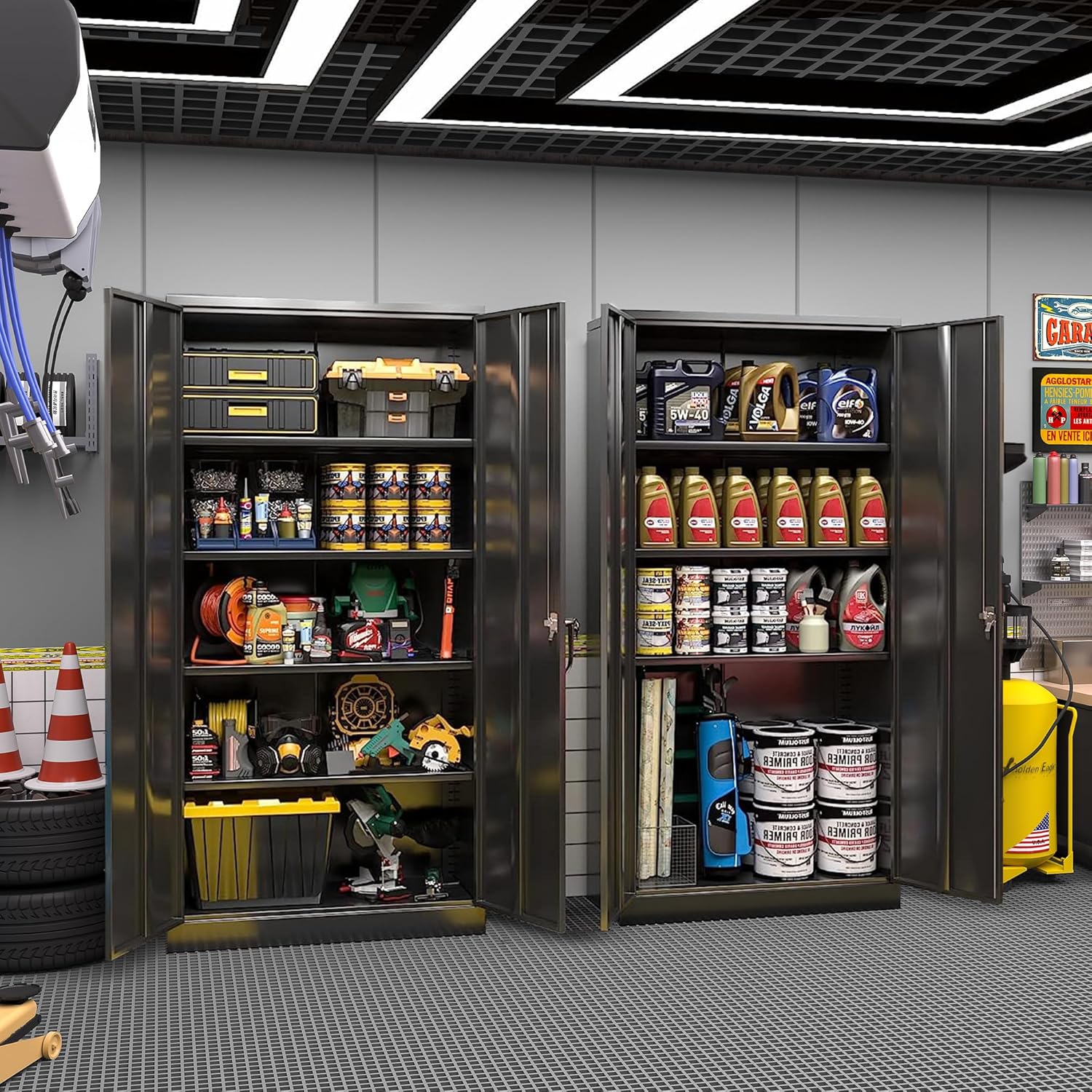 - 【Heavy duty cabinet】: Greenvelly large metal storage cabinets are made of high-quality cold rolled steel with a steel plate thickness of 0.8mm, which is stronger and more durable than other cabinets. The garage storage system uses new imported paint, which is scratch and wear-resistant, extending the use of the metal cabinet and easy to keep clean.It is a good choice for.