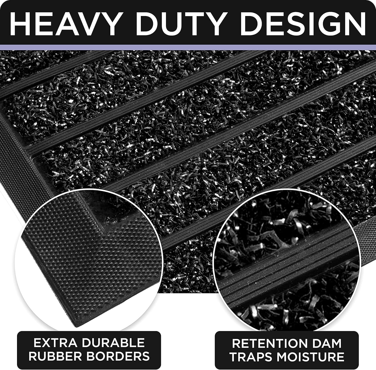 ubdyo Extra Durable Door Mat - Dirt Trapping Outdoor Welcome Mats - Non-Slip Outdoor Indoor Entrance - Low Profile Front Doormat (30" x 17", Bright Black)