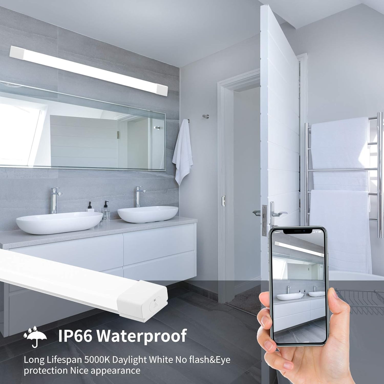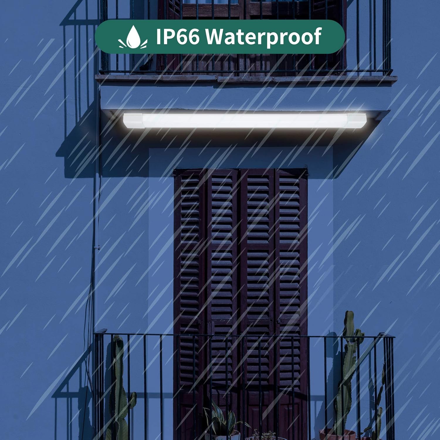 - 【WIDELY USED】Upgrade Waterproof IP66 led shop lights with plug, definitely a good choice for wet and damp location (indoors or outdoors). 180° wide beam angle and 240 pieces lamp beads provides wide illumination range. Ideal for both residential, commercial and industrial lighting, such as bathroom, bedroom, kitchen, corridor, garage, warehouse, basement, office, shop, supermarket.