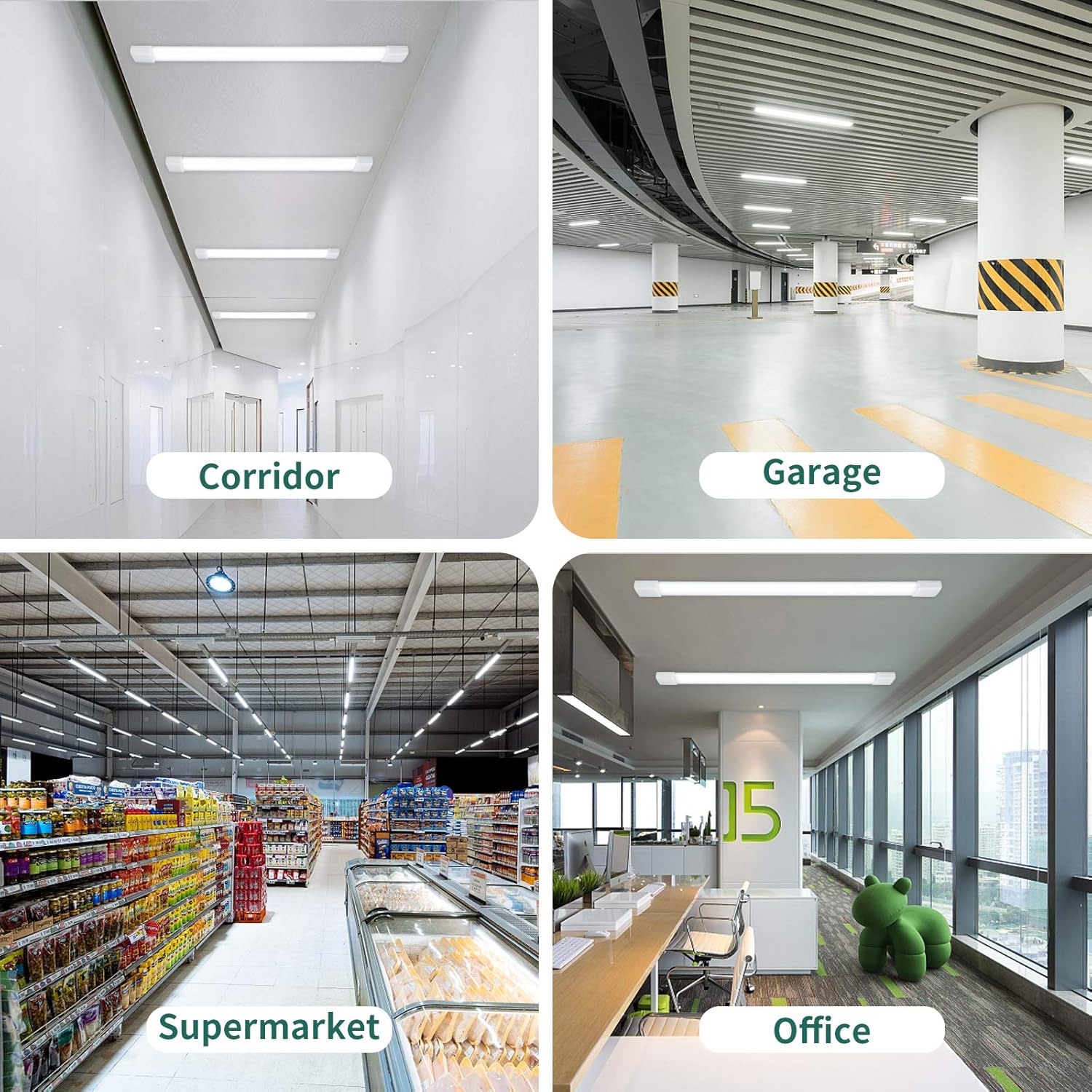 - 【SUPER BRIGHT AND ENERGY SAVING】More than 3600 lumens 5000K bright white temperature,This led shop light fixture is 36w ,perfect for garage, basement, under cabinet, warehouse, workshop, workbench, kitchens, hallways, schools, laundry room, utility room and recreation rooms,office general lighting.