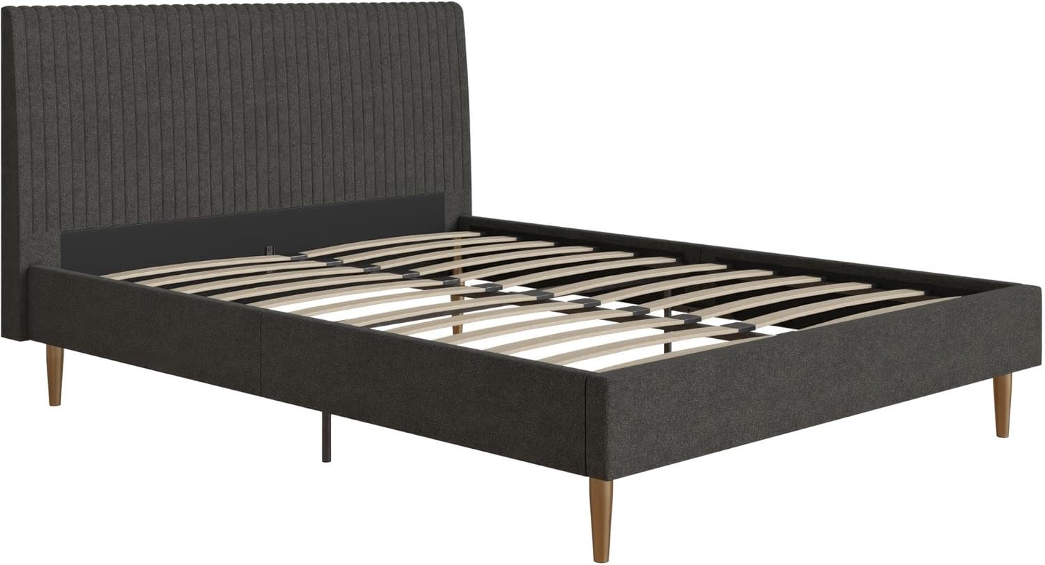 Mr. Kate Daphne Upholstered Queen Bed Frame with Headboard, Modern Platform Queen Bed Frame, Dark Gray Linen