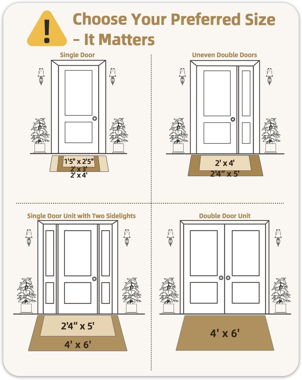 - All-Weather Longevity: Engineered for year-round use, this front door mat resists fading, stains, and weathering. It performs reliably through sun, rain, and snow, serving as a steadfast door mat indoor entrance that maintains its appearance and function season after season.