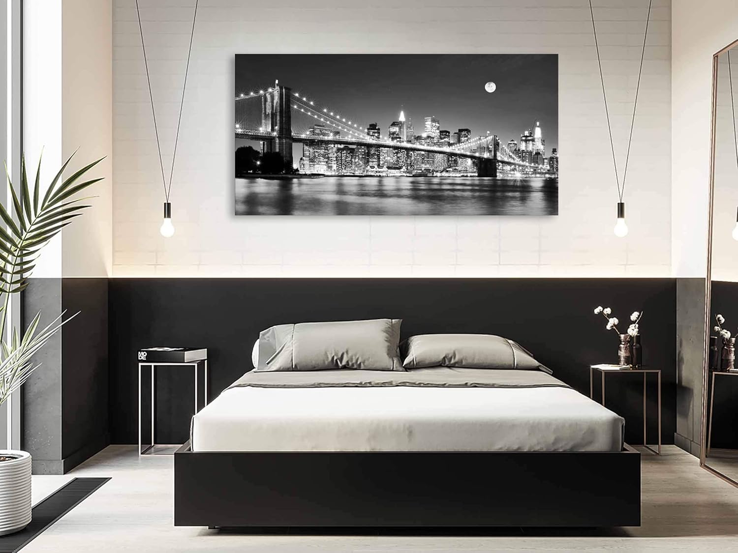 Baisuart-Q30375 Brooklyn Bridge Night View 1 Panels Landscape Artwork Canvas Prints Moon Night New York City Scene Picture Paintings Black and white Wall Art for Oiffce Home Decorations Wall Decor