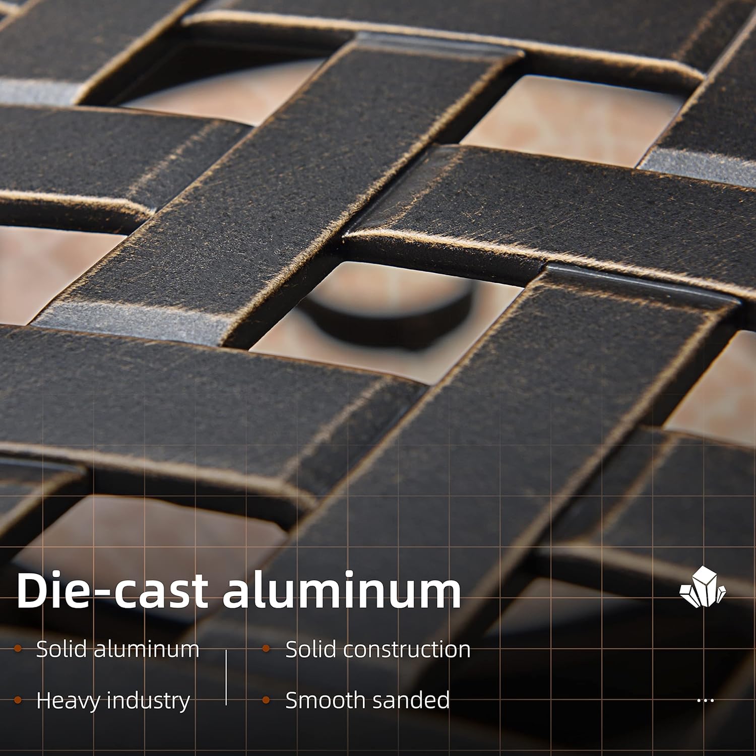 • Elegant Vintage Style: This cast aluminum furniture set features a bronze finish that presents a smooth and glossy appearance, enhancing the overall sense of sophistication