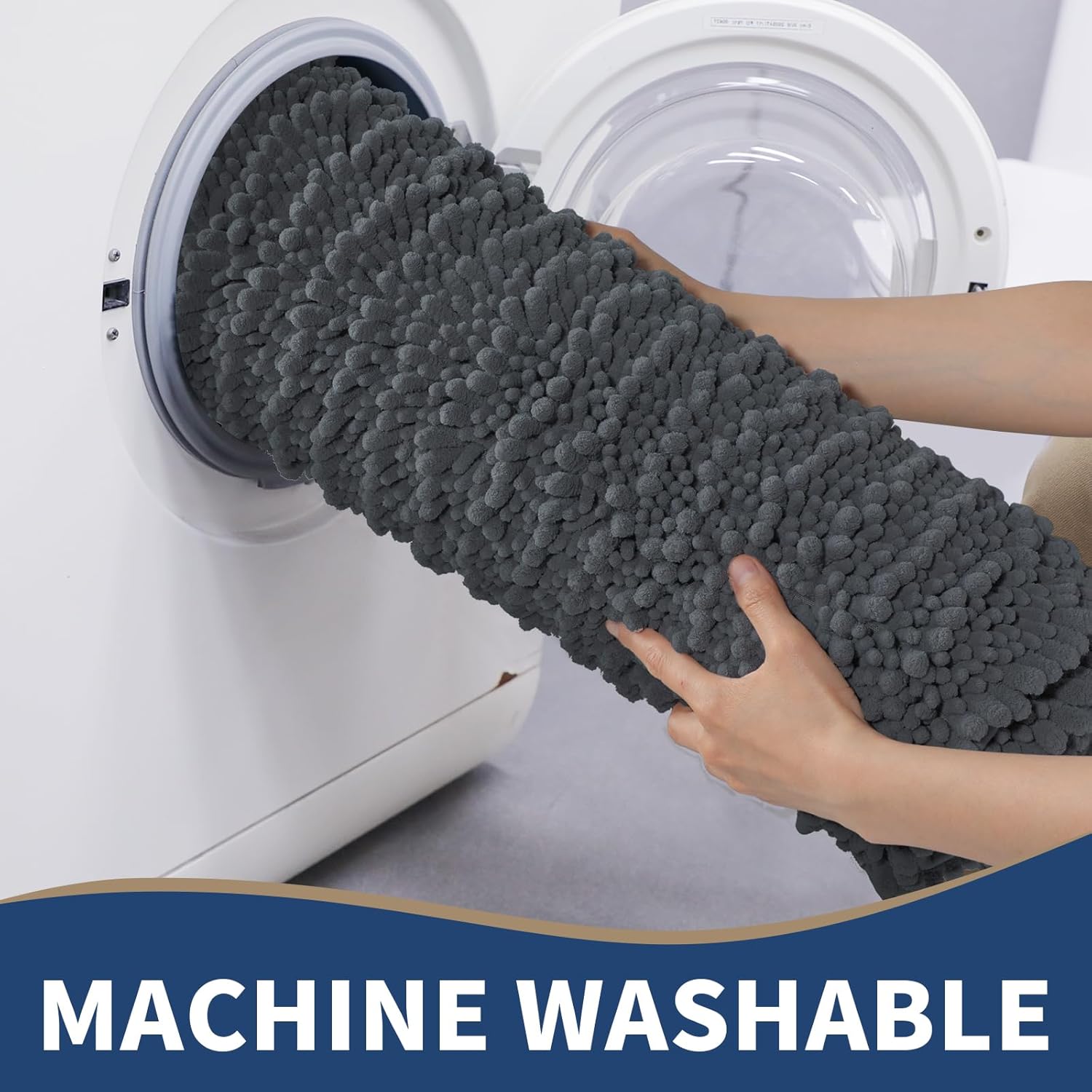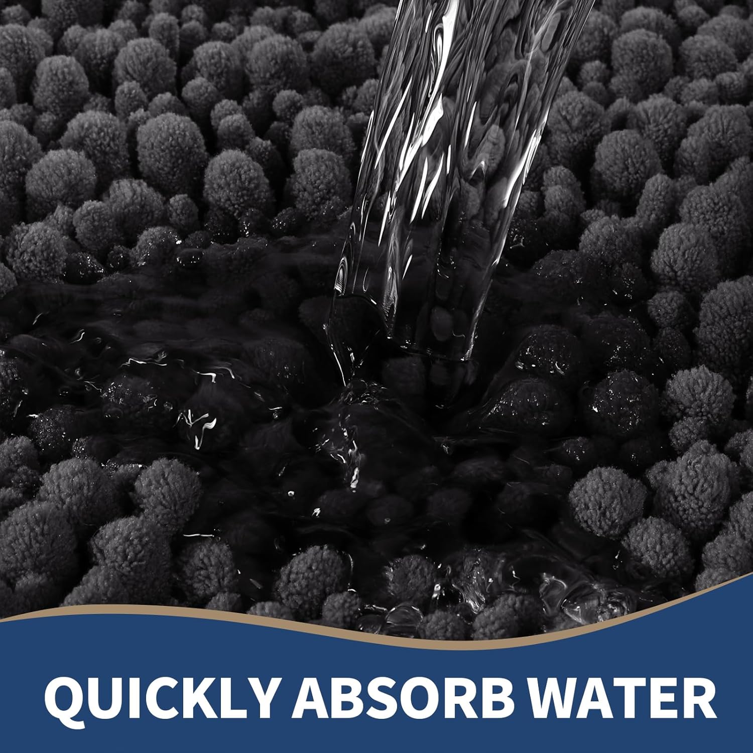 Yimobra Bathroom Rugs Sets 2 Piece - Quick Dry Extra Thick Luxury Chenille Bath Mat, Non Slip Super Absorbent for Tub Shower Sink, Machine Washable Shaggy Floor Mat, 32"x20"+24"x17" Inch, Dark Grey