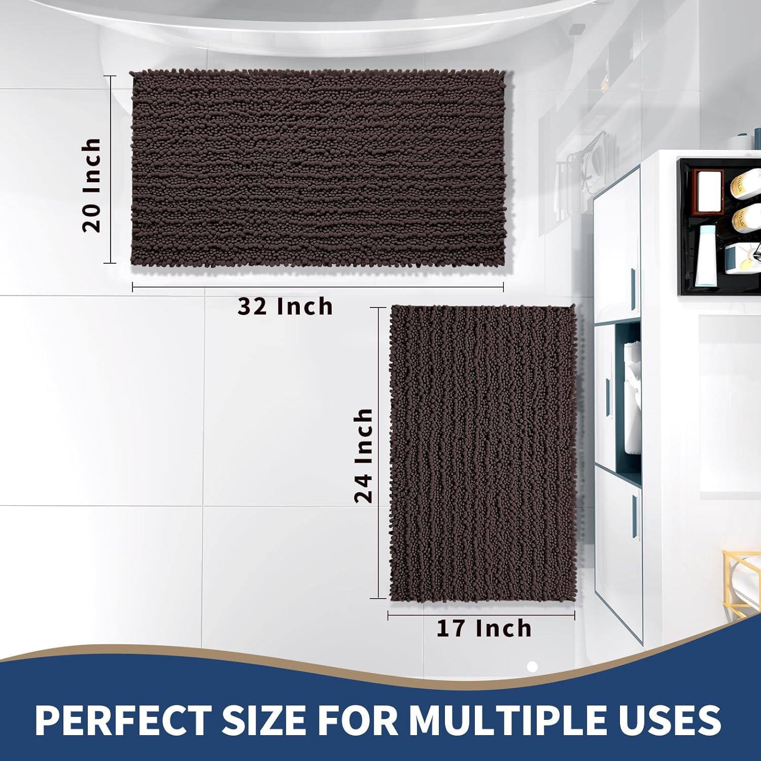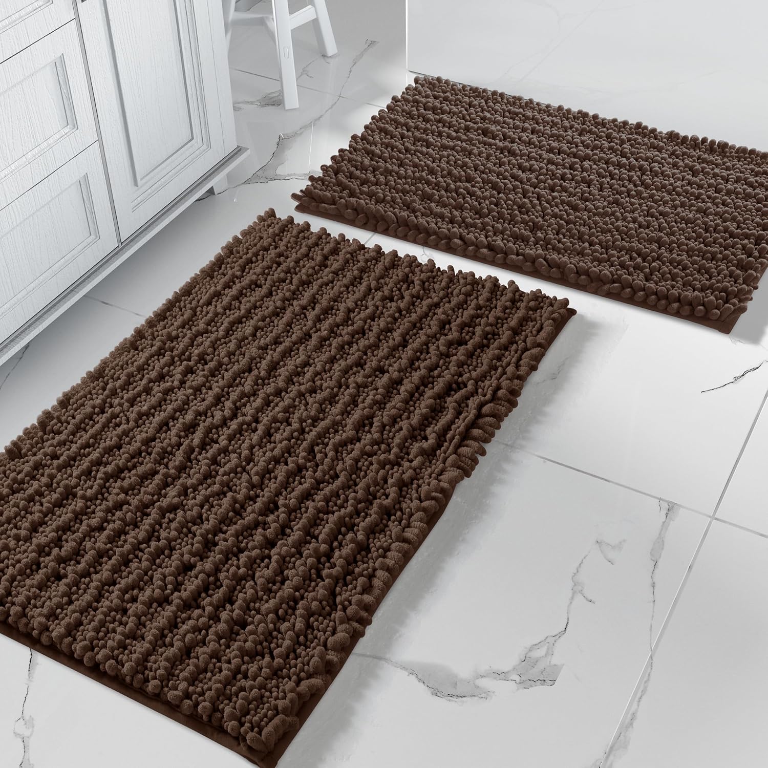 Yimobra Bathroom Rugs Sets 2 Piece - Quick Dry Extra Thick Luxury Chenille Bath Mat, Non Slip Super Absorbent for Tub Shower Sink, Machine Washable Shaggy Floor Mat, 32"x20"+24"x17" Inch, Brown