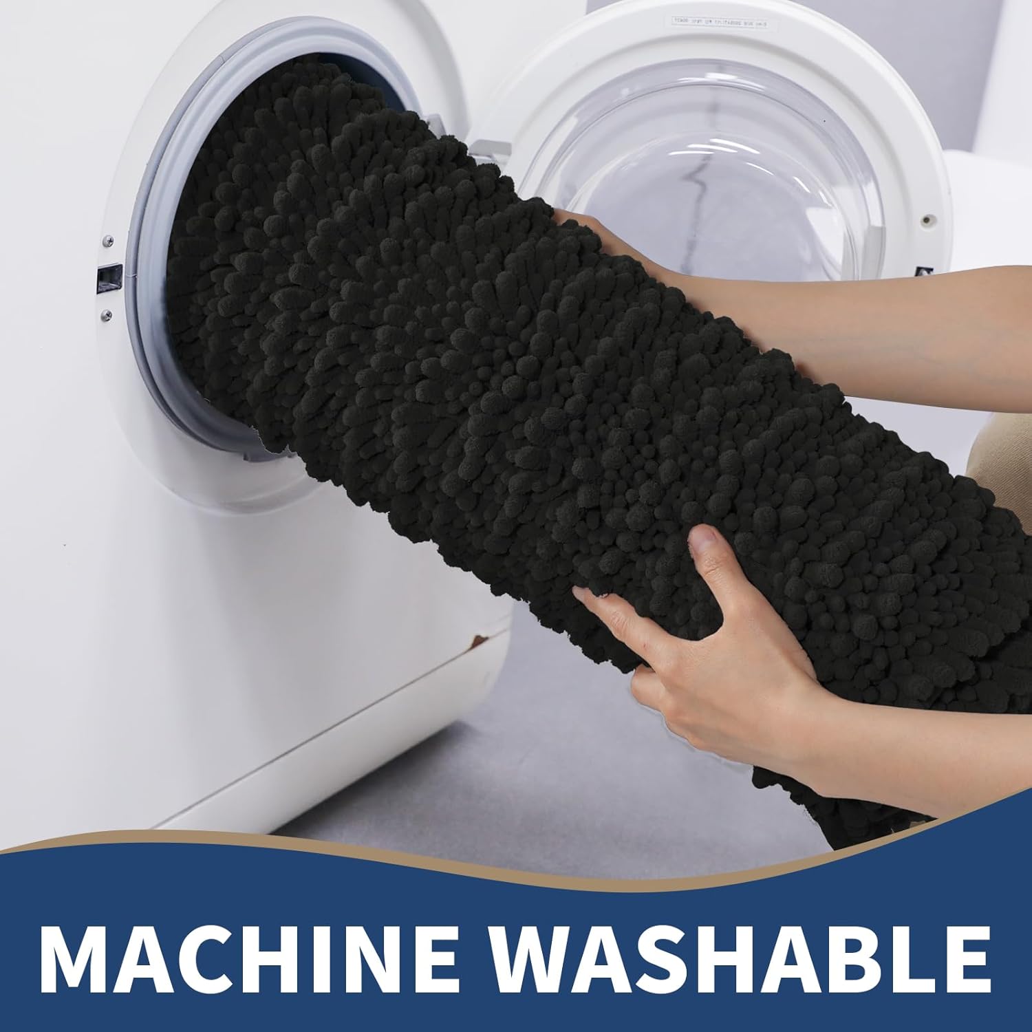 Yimobra Bathroom Rugs Sets 2 Piece - Quick Dry Extra Thick Luxury Chenille Bath Mat, Non Slip Super Absorbent for Tub Shower Sink, Machine Washable Shaggy Floor Mat, 32"x20"+24"x17" Inch, Black