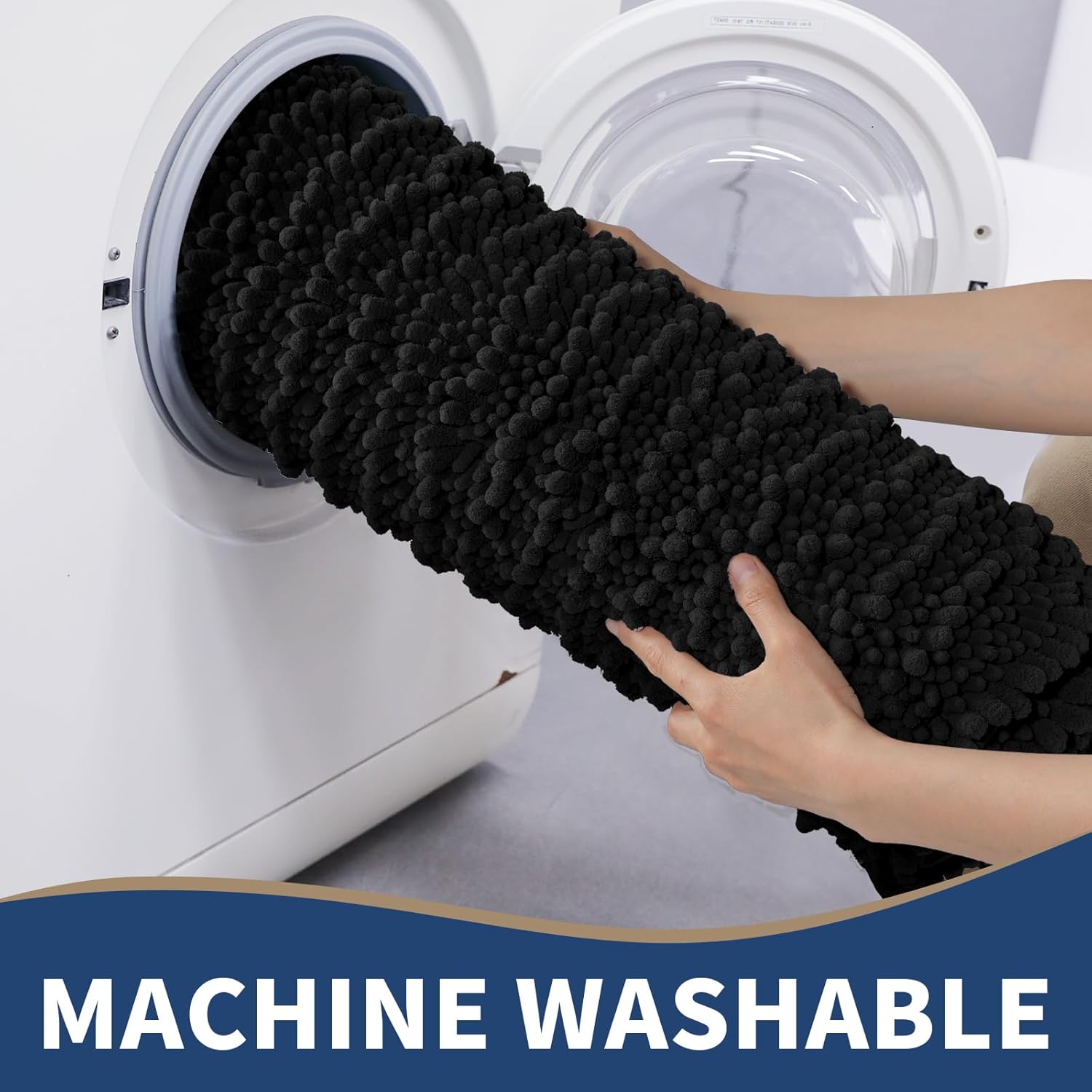 Yimobra Bathroom Rugs Sets 2 Piece - Quick Dry Extra Thick Luxury Chenille Bath Mat, Non Slip Super Absorbent for Tub Shower Sink, Machine Washable Shaggy Floor Mat, 44"x24"+24"x17" Inch, Black