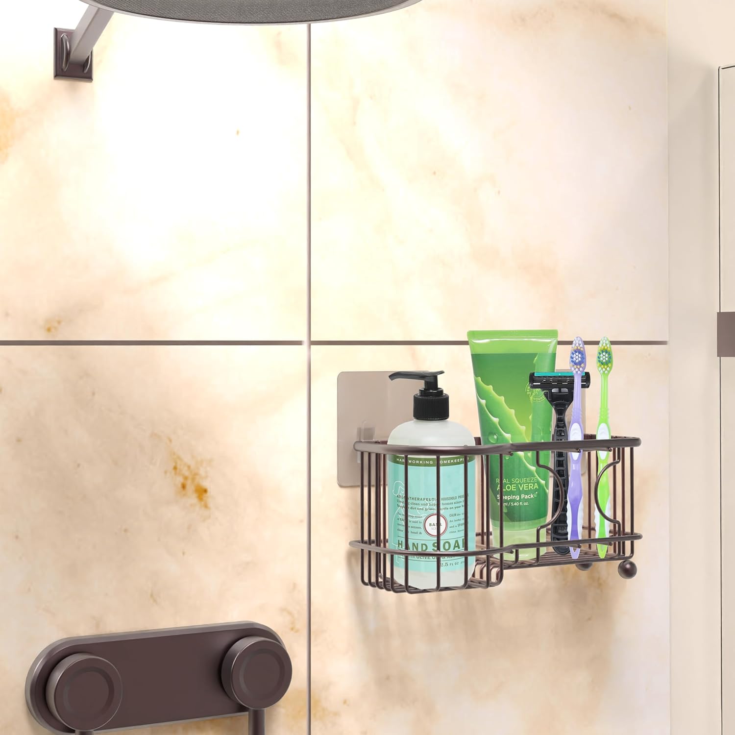 • Dual Construction: Free-standing and wall-mount, modern design with sturdy bronze-finished steel balls raised base. Also come with adhesive sticker hooks to hold the caddy on wall.