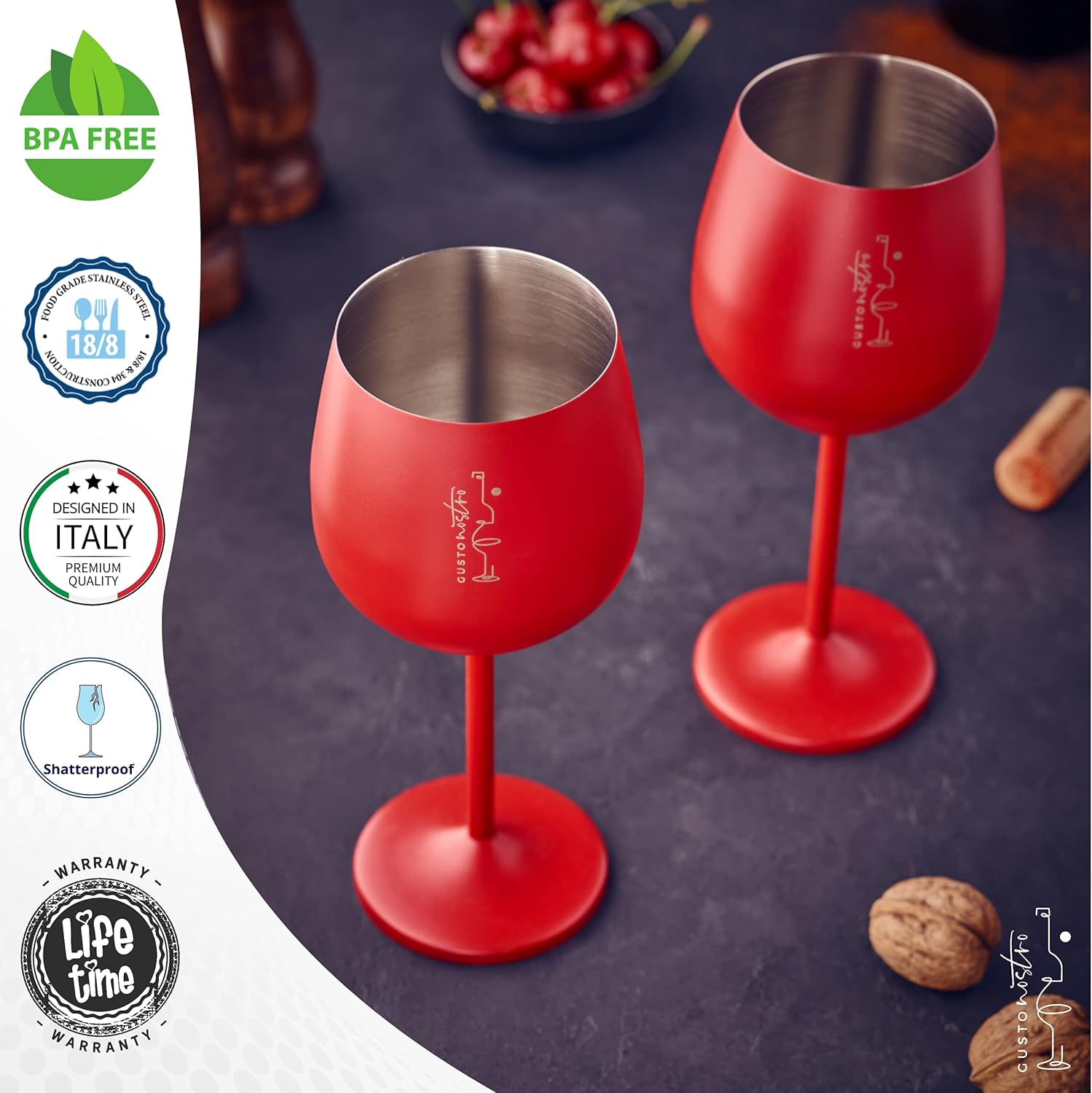 • TASTEFULLY PACKAGED and ready to bestow on friends, family and colleagues, Gusto Nostro Stainless Steel Stemmed Wine Glasses make impressive housewarming, wedding or Christmas gifts for wine lovers.