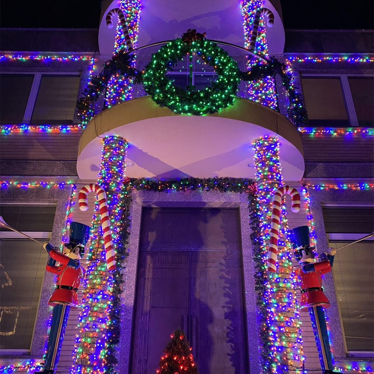 YEGUO 66ft 200 LED Christmas Light Outdoor Waterproof, 8 Modes String Lights Multicolor, Green Wire Twinkle Tree Light Plug in with Timer Memory