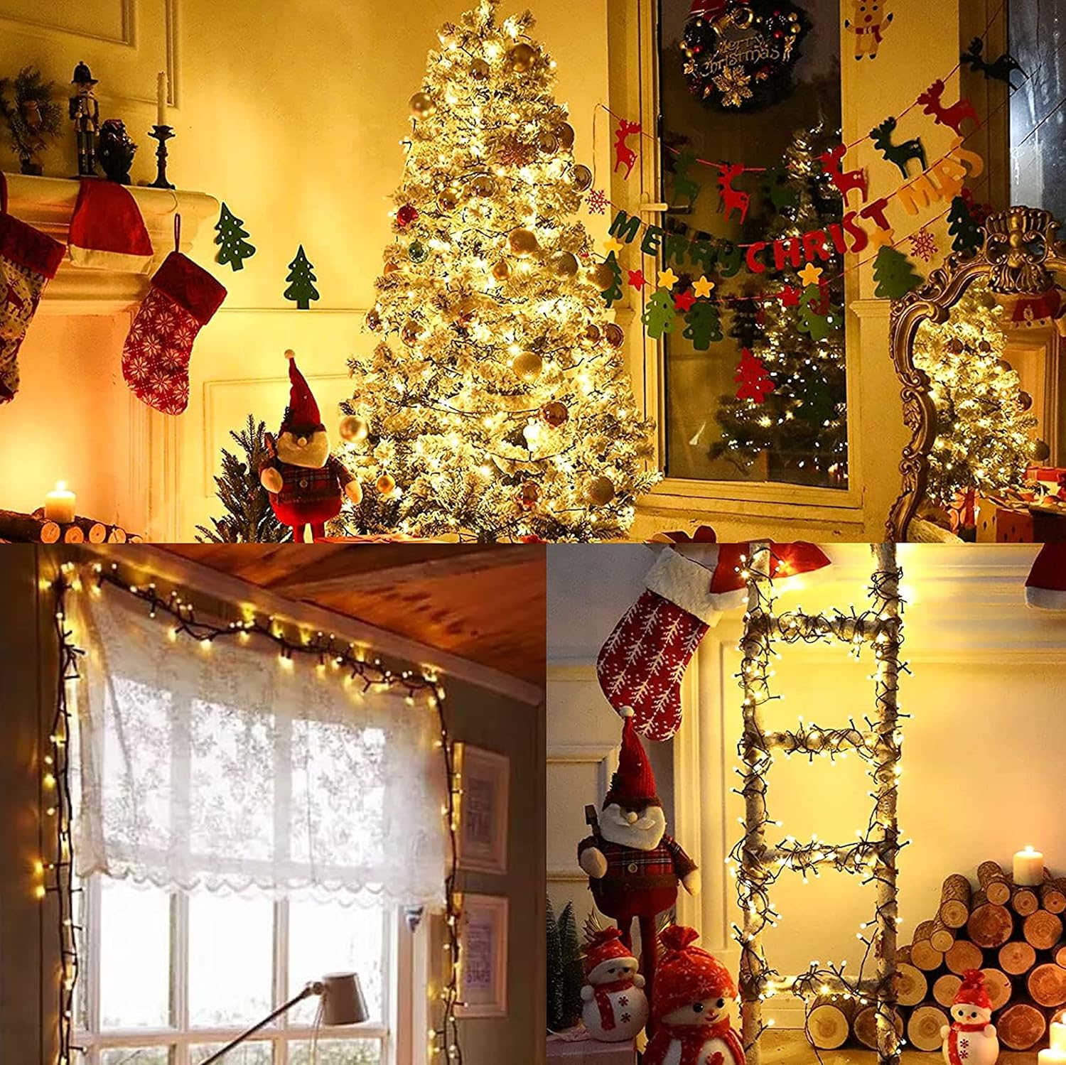 YEGUO 200 LED 66ft Christmas Lights Outdoor Waterproof, Warm White String Light Indoor, 8 Modes Green Wire Twinkle Xmas Tree Light Plug in with Memory Timer