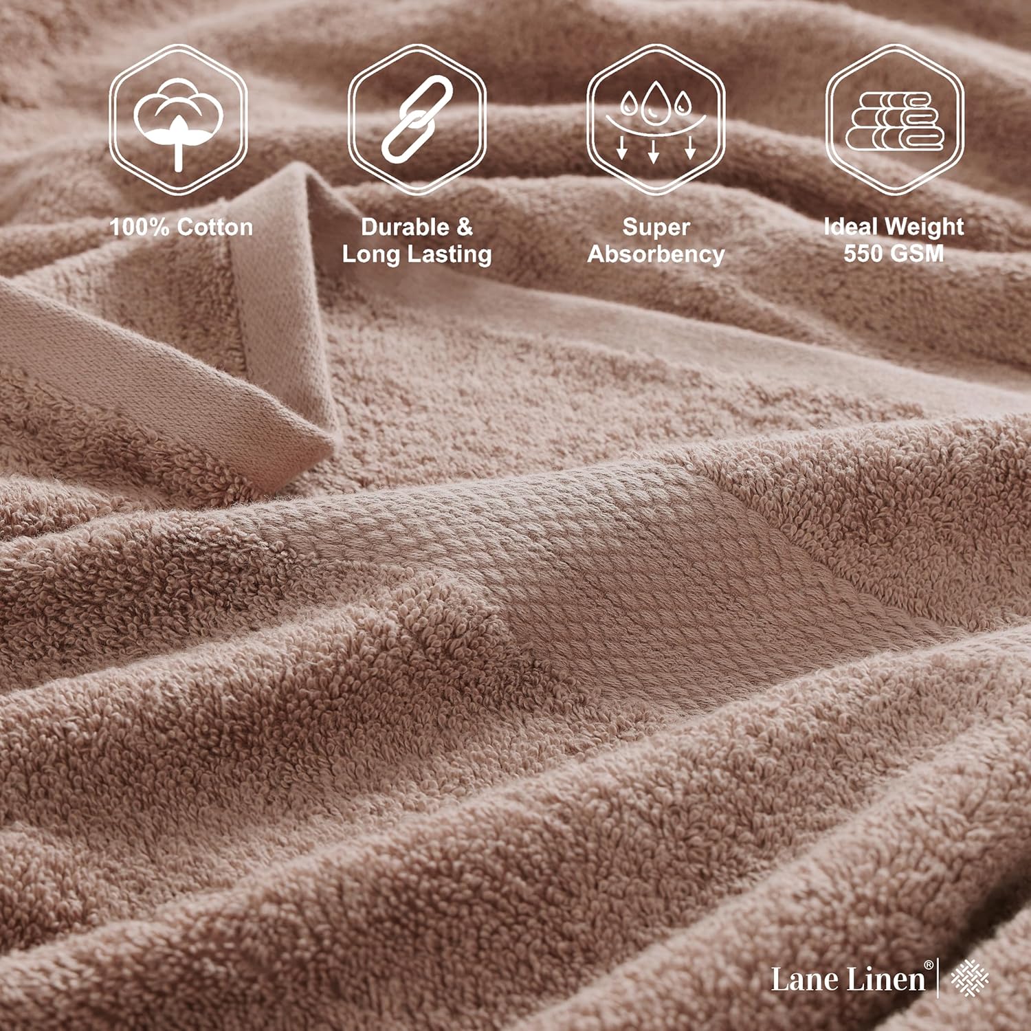 LANE LINEN 100% Mercerized Cotton Luxury Bathroom Towels Set - 6 Pieces - Ring Spun Technology - 2 Bath, 2 Washcloths, 2 Hand Towels - Suitable for All Skin Types Including Sensitive Skin - Taupe