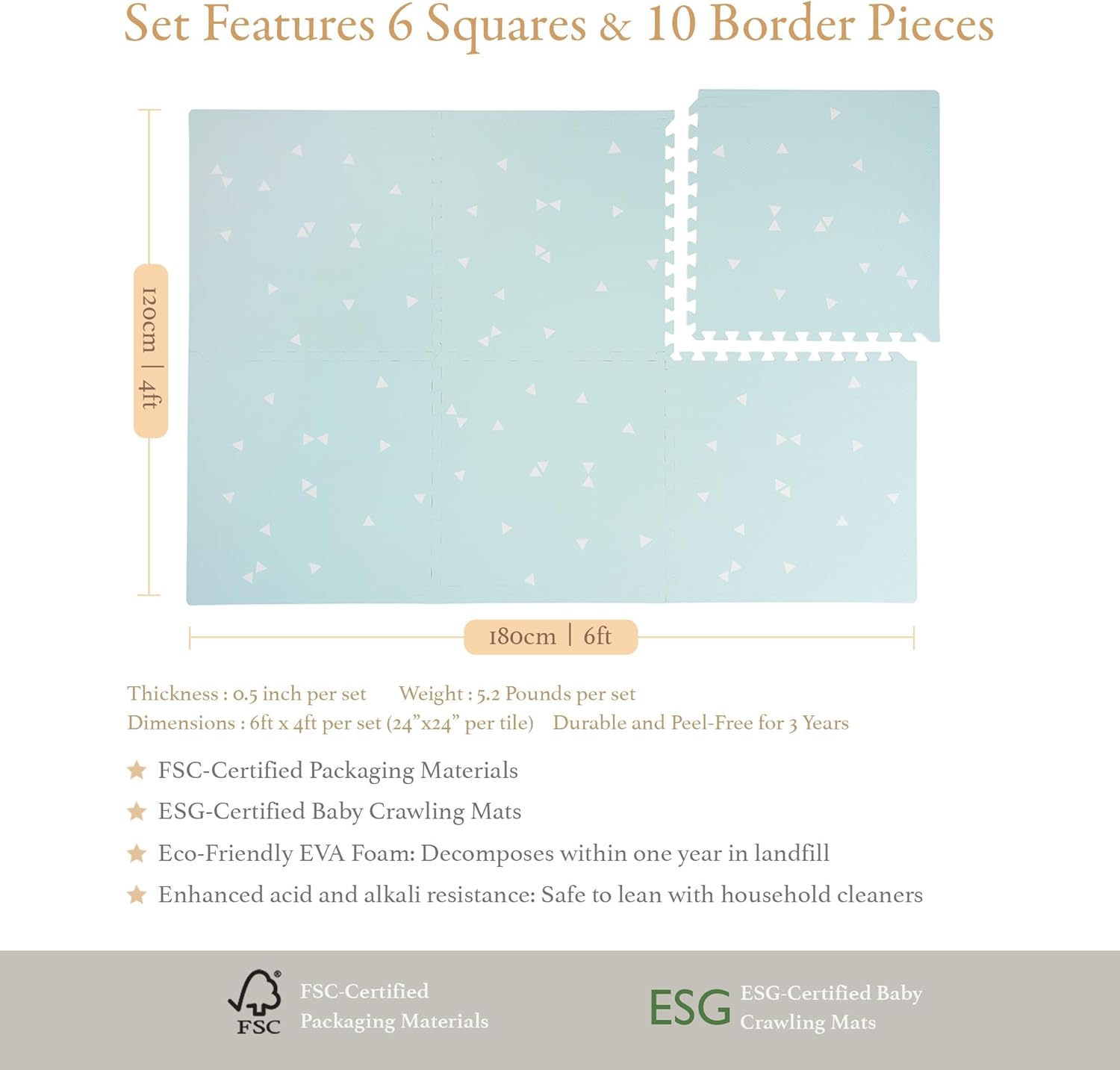 Popsykosy Premium Exercise & Baby Foam Play Mats - Stylish & Large Non-Toxic Puzzle Floor Mat - 6 Tiles - Spacious 6ft x 4ft - Peel-Resistant Reinforced - Soft, Thick, Waterproof - Triangle Blue