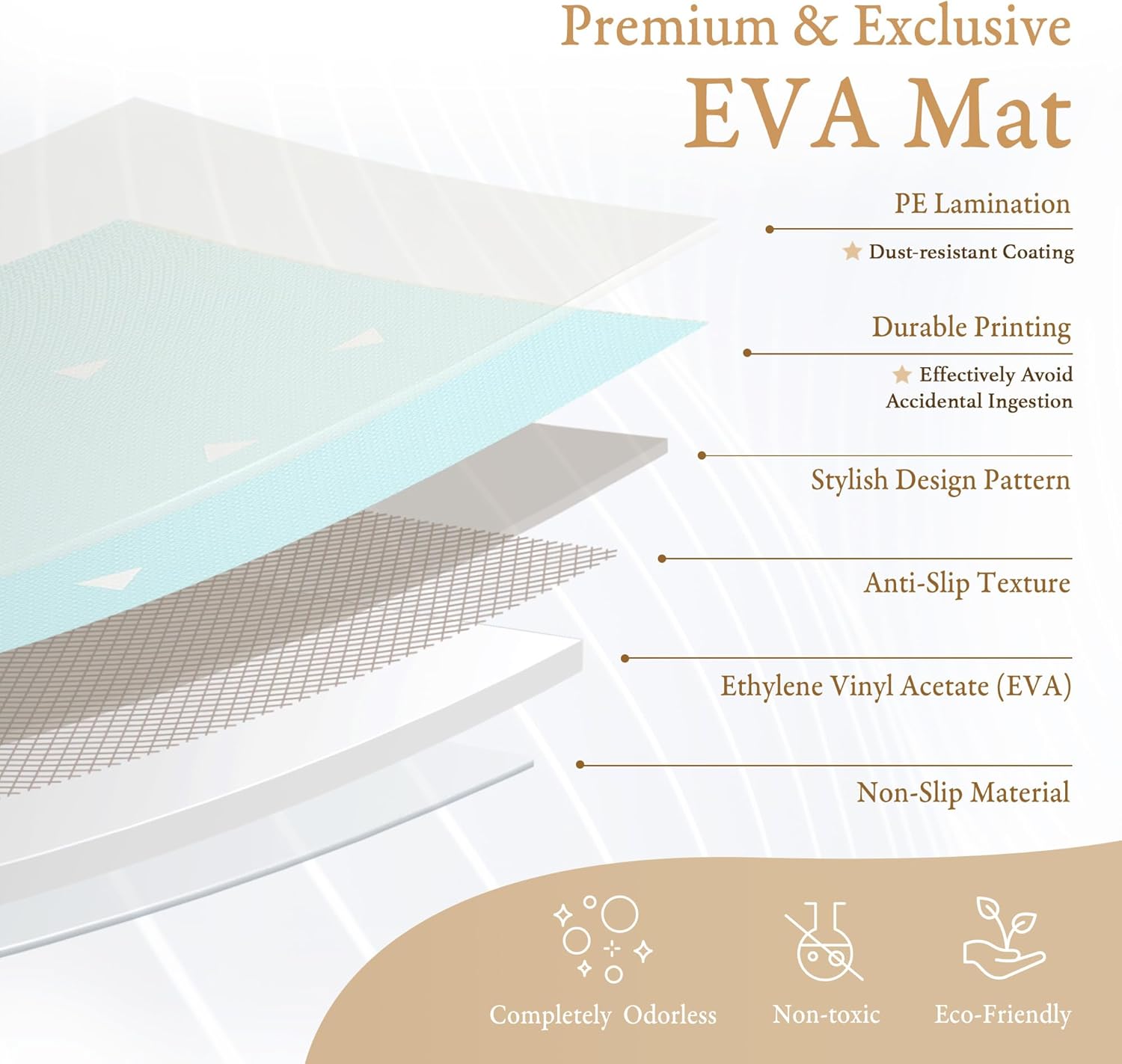 - 【SAFE MATERIALS】Made from durable, shock-absorbing, odorless, and non-toxic EVA foam, our mats ensure safety and comfort. Using a unique printing method, it effectively addresses issues like sun fading and peeling that other brands often encounter, prevents small pieces from breaking off and being accidentally swallowed by babies, and enhances overall durability. With zero-benzene technology, it eliminates toxic odors found in many commercial products, ensuring non-toxic and safe floor mats.