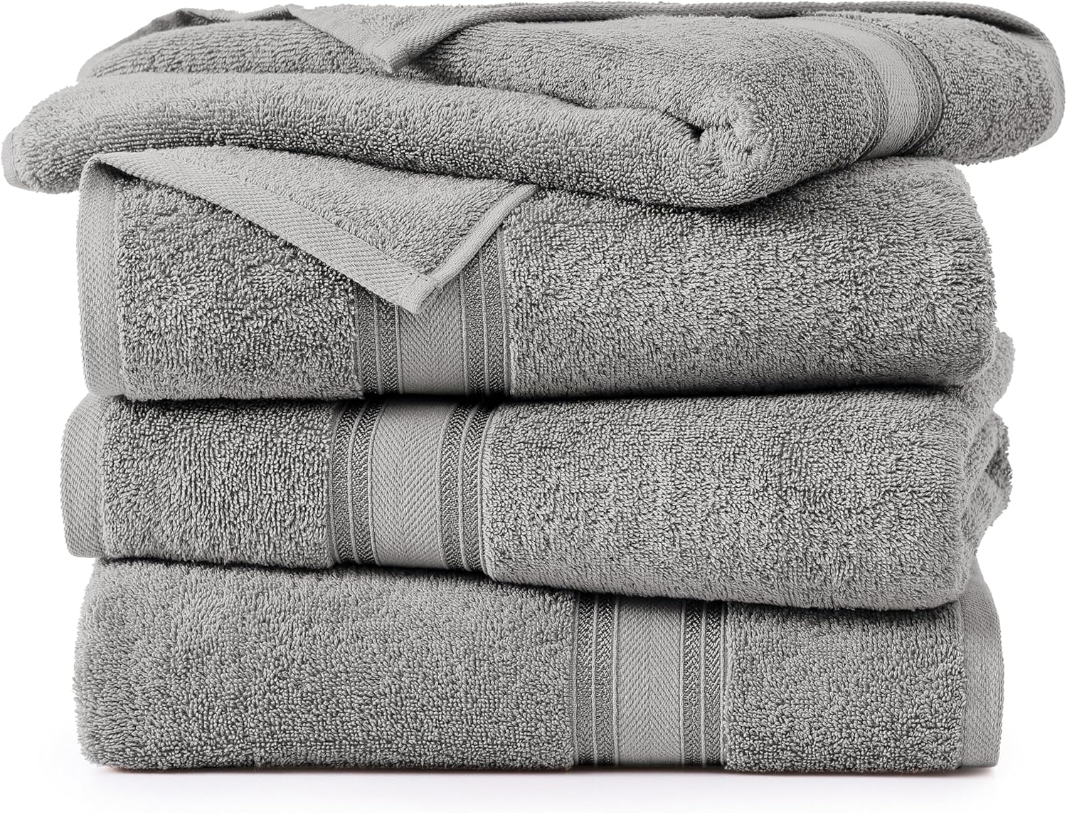 Lane Linen 100% Cotton Bath Sheets Set of 4 (35"x66") - Zero Twist Cotton Extra Large Bath Towels Sets - Quick Dry, Soft & Absorbent Oversized Grey Towels Set - Pre Shrunk, Fade Resistant - Space Grey