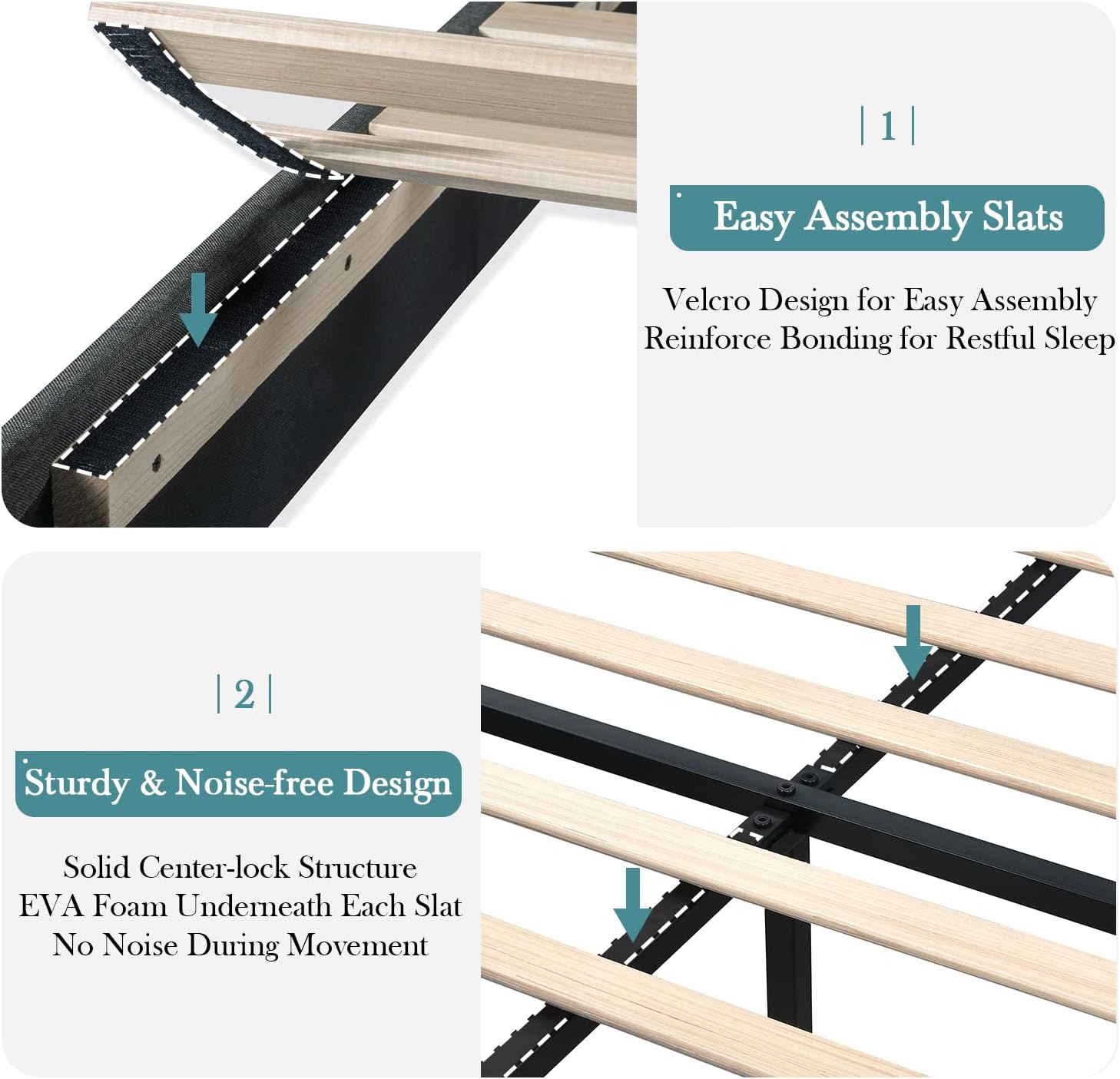 • Box Spring Not Required: Reliable wooden slats are designed to support and extend the life of your latex, memory foam, or spring mattress. Mattress thickness recommend being 8"-12"( box spring is optional)