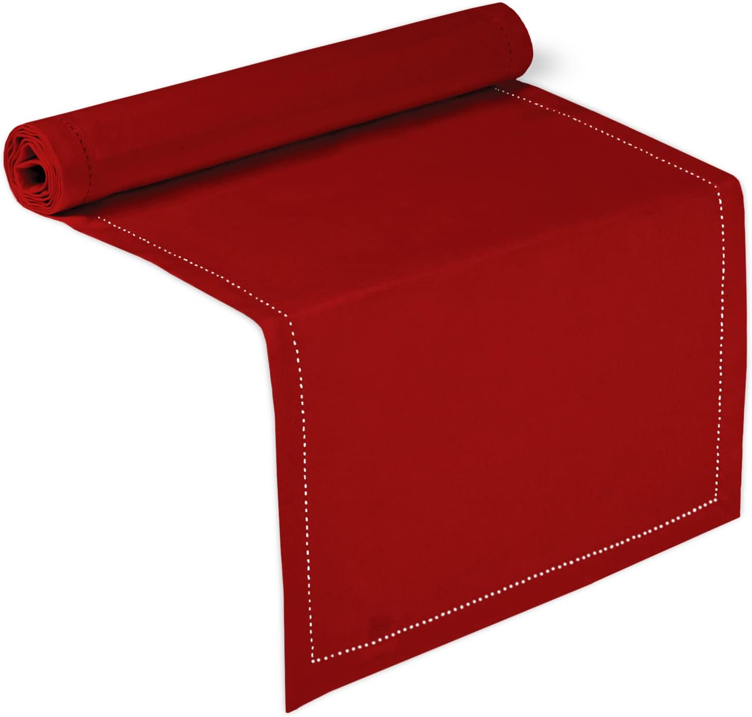 Encasa XO Dining Table Runner 13"x91" | Pure Cotton Hemstitched Design | Red - Machine Washable