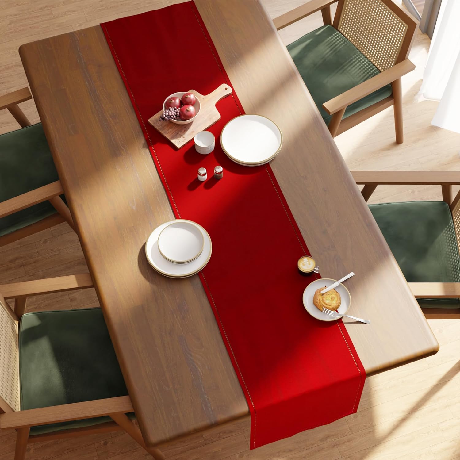 • HIGH-QUALITY FABRIC: Made from pure cotton at 180 GSM, this table runner offers medium weight, ensuring durability and a soft touch. The mercerized and dyed fabric provides a bright, deep lustrous appearance, adding a sophisticated touch to any dining room or kitchen setting.
